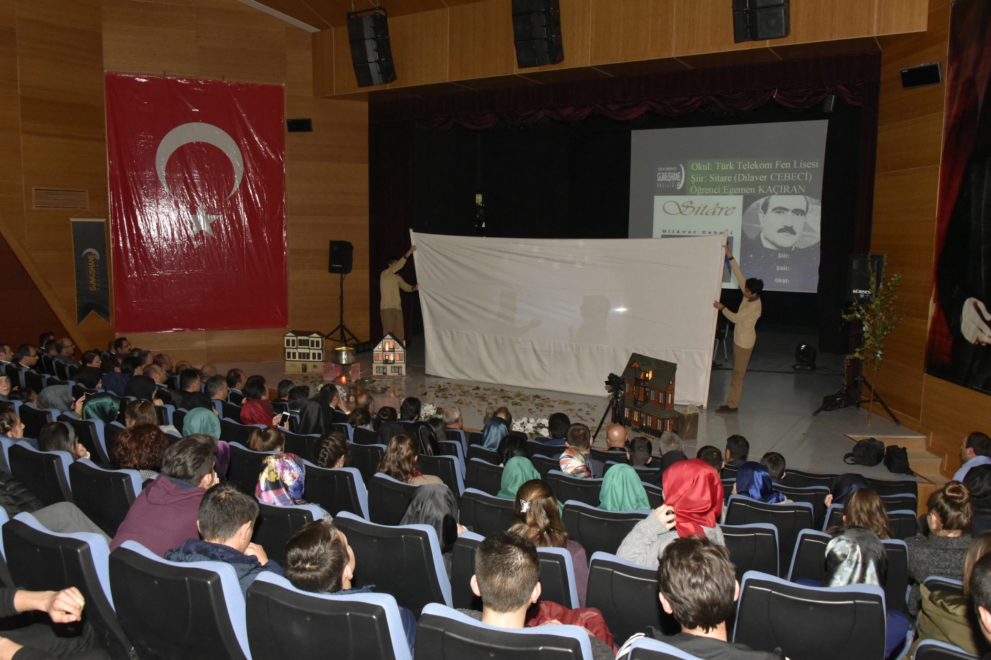 Gümüşhane’nin türkülerinden, Gümüşhaneli şairlerin şiirlerinden oluşan dinletide belirlenen 7 yazar hakkında bilgilendirme yapıldıktan sonra ilgili okuldan bir öğrenci sahne alarak şairin şiirini seslendirdi. Her şiir dinletisinin ardından ise bir Gümüşhane türküsü seslendirildi.
