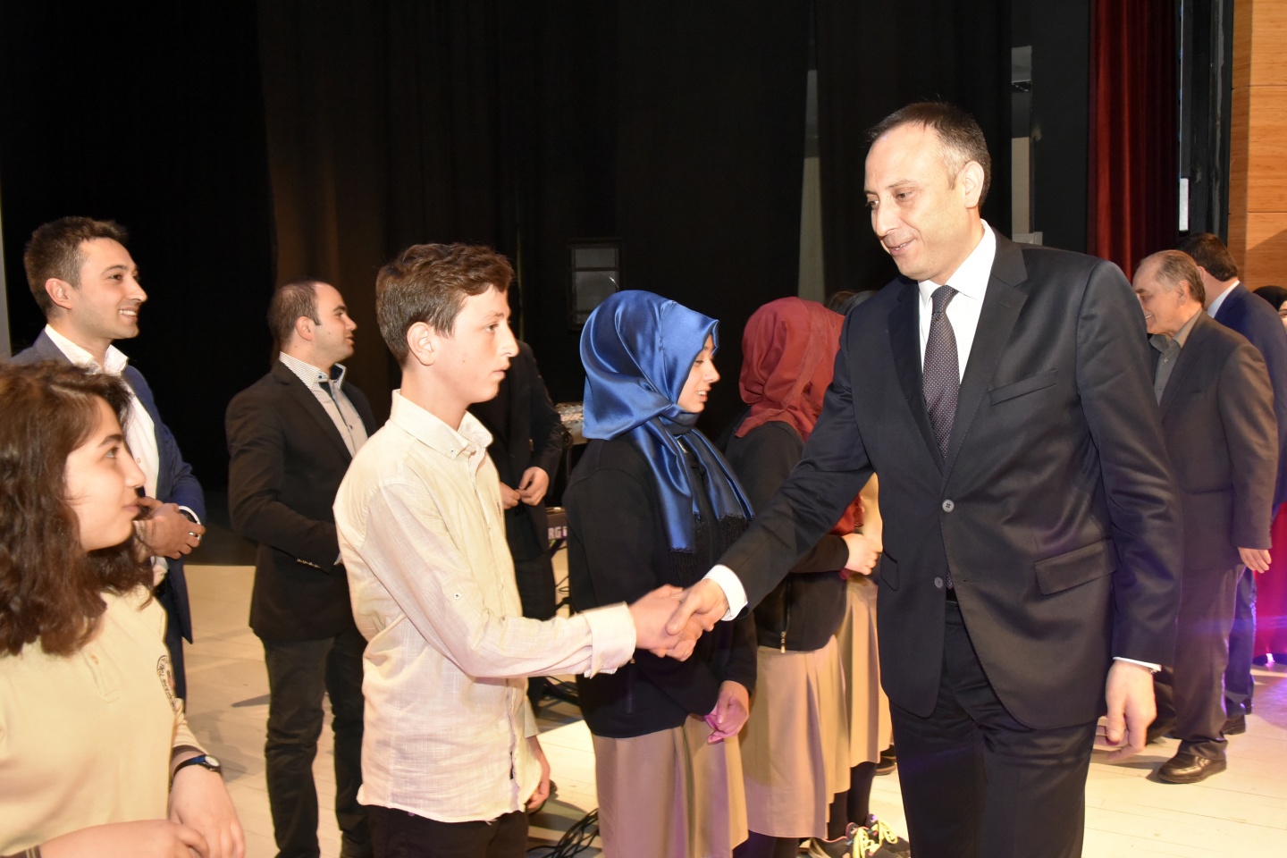 Programın sonunda Vali Vekili Kahraman ve protokol üyeleri etkinlikte sahne alan öğrencileri tebrik etti.