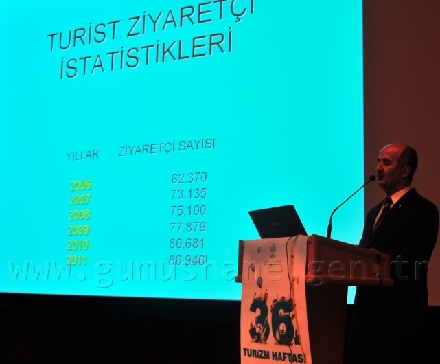 İl Kültür ve Turizm Müdürü Temel Yalçın ise konuşmasında İl Milli Eğitim Müdürlüğü ile ortaklaşa düzenledikleri programda kentte 2007 yılından bugüne kadar yapılan çalışmalar hakkında bilgi verdi. Gümüşhane’nin turizm pastasından yeteri kadar pay alamadığını kaydeden Yalçın, “Gümüşhane’de son 5-6 yıldır turizm sözü edilmeye başlandı. Gümüşhane’nin lügatına bu kavram daha yeni girdi. Bugün turizm pastasından daha fazla pay almamız için var gücümüzle çalışıyoruz. Turizm yalnızca müdürlüğümüzün işi değil, topyekün hareket gerektirir.” dedi.