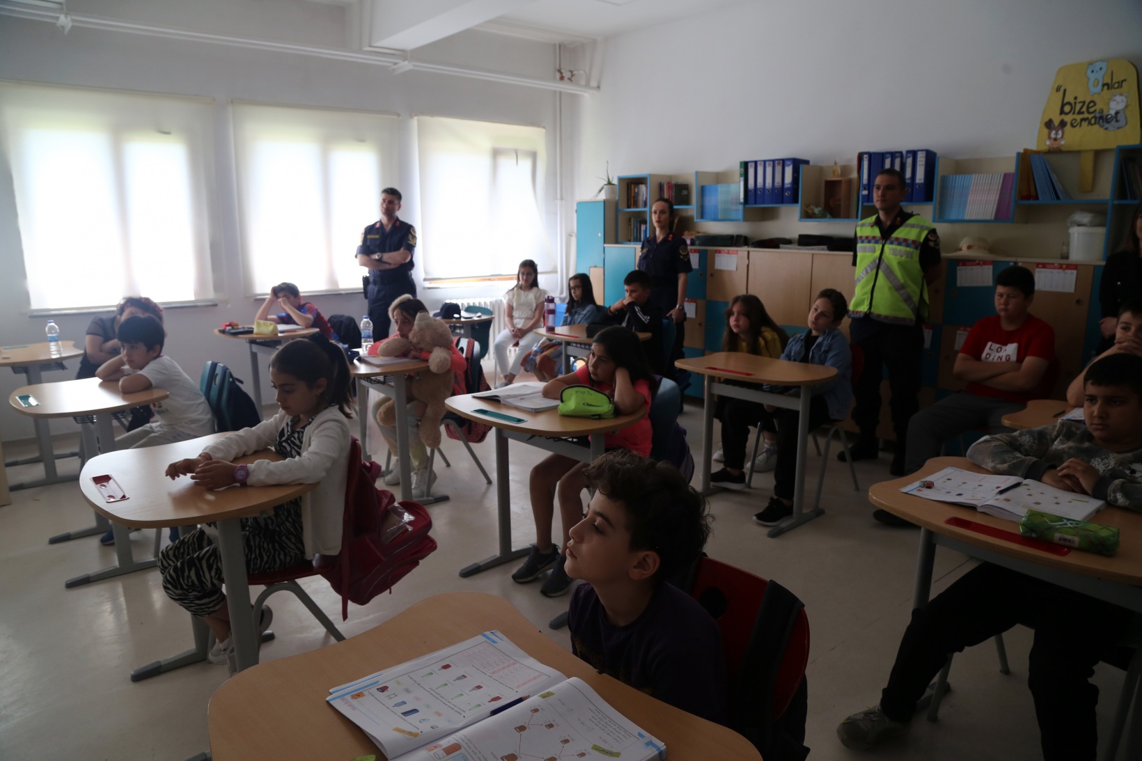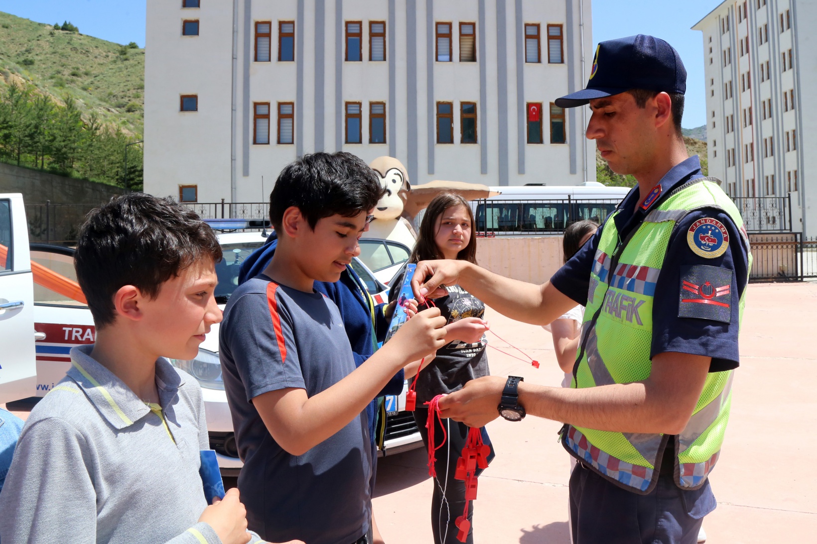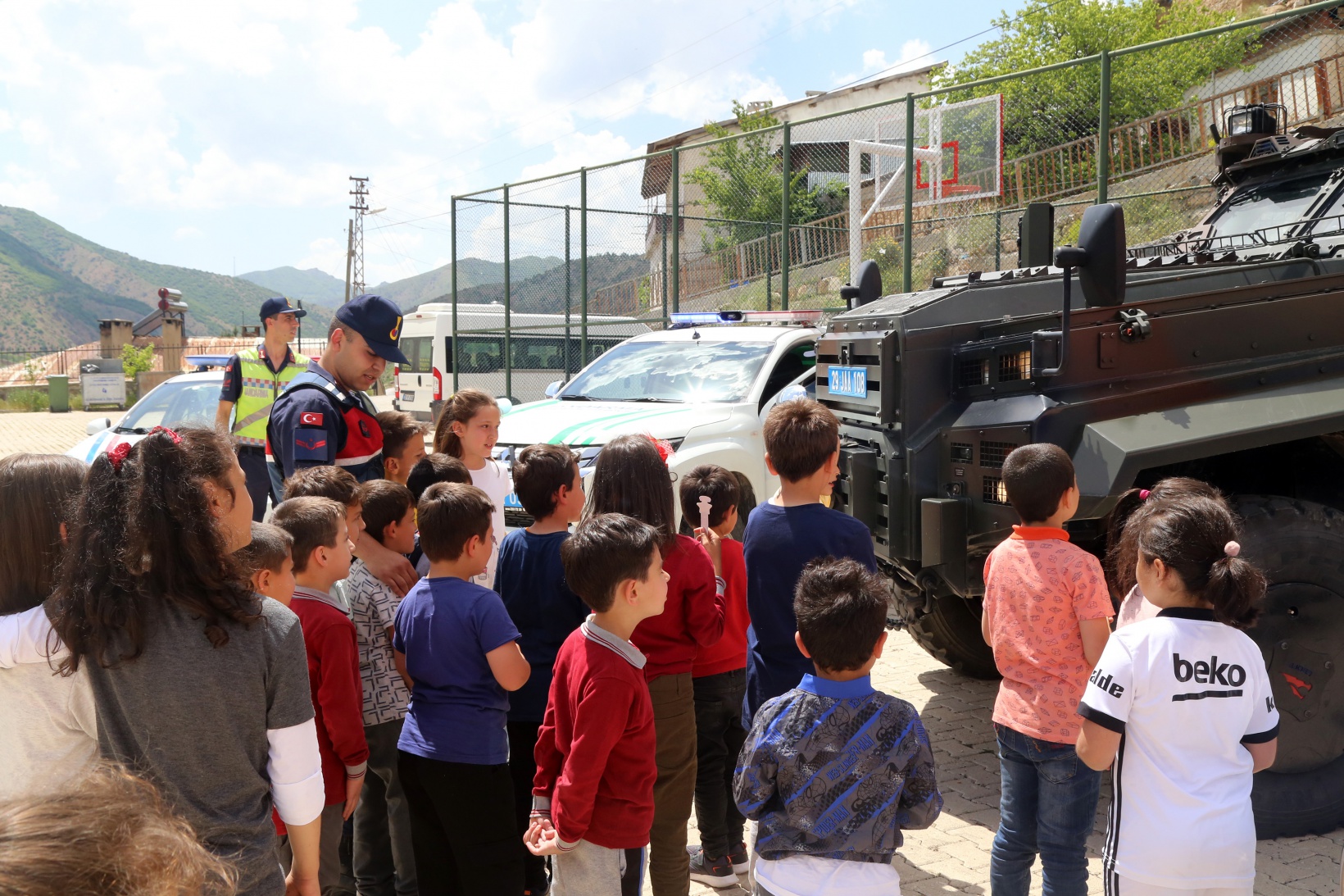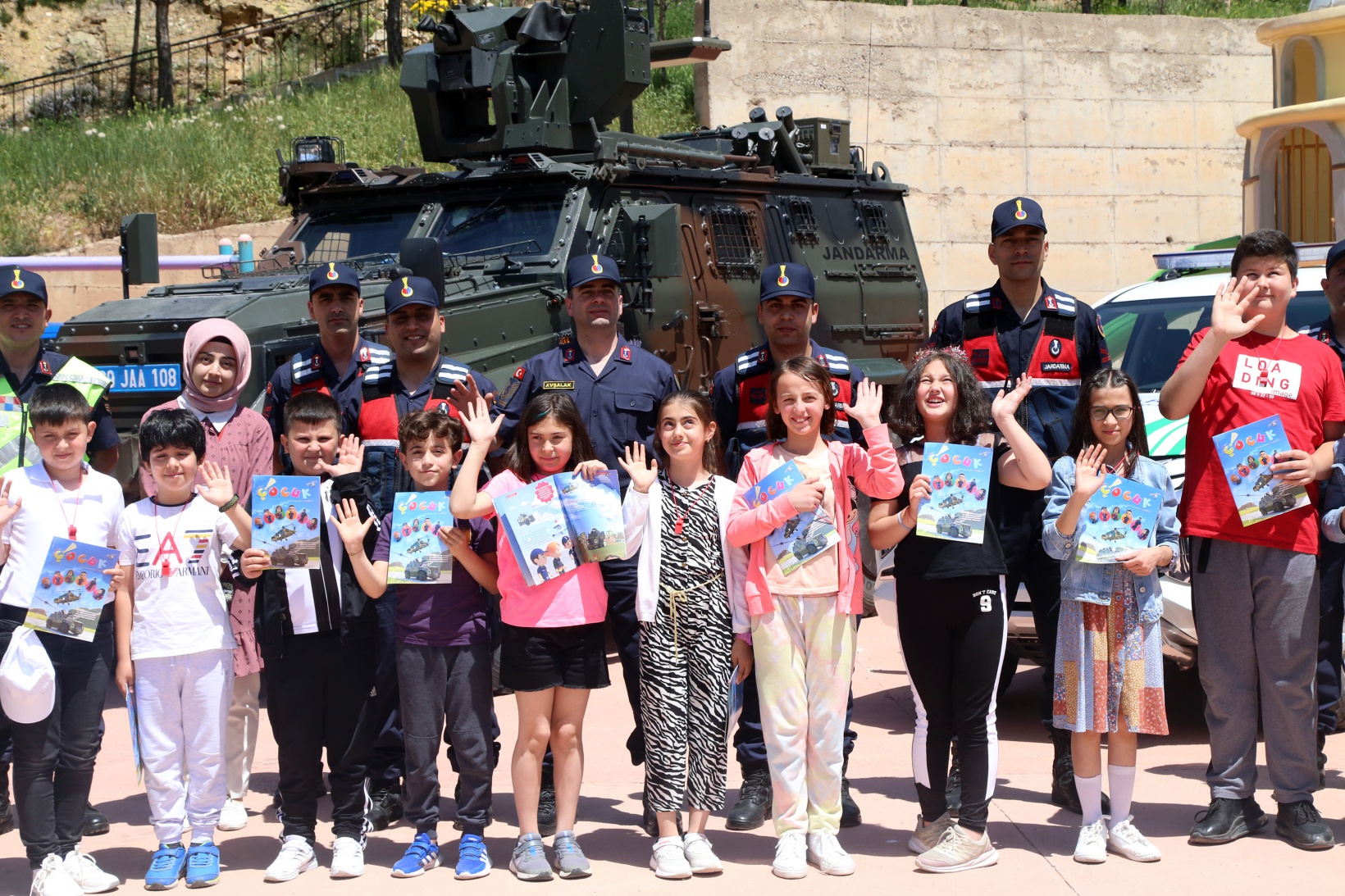 Çizgi film gösteriminin ardından öğrenciler Jandarmanın görevlerinde kullandığı araç ve gereçler tanıtıldı.