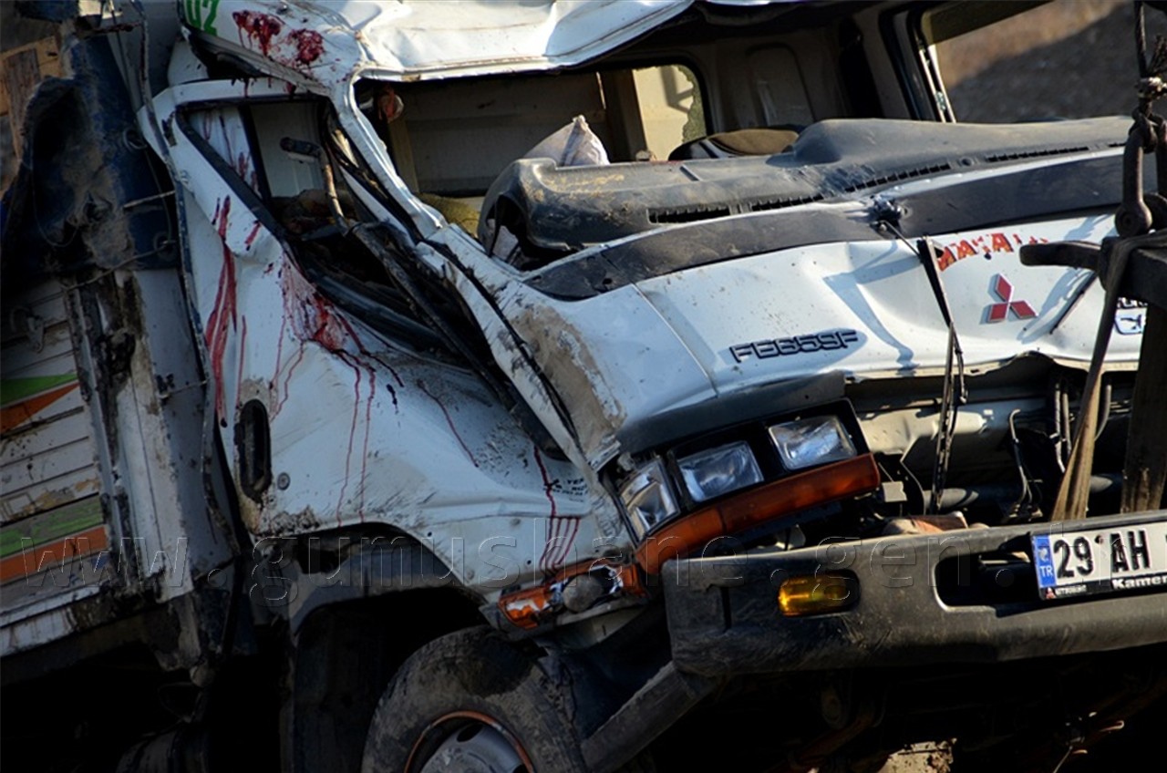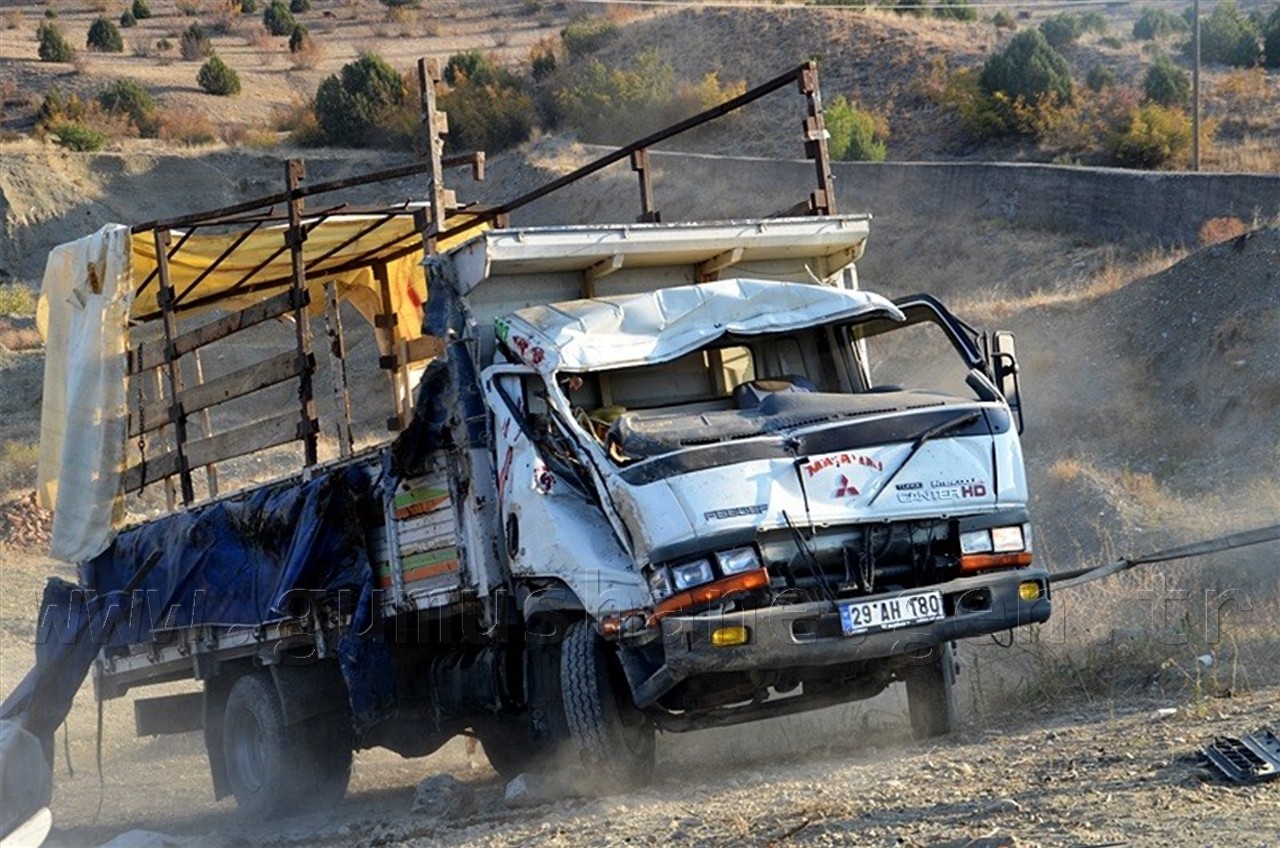 D-100 karayolu kenarındaki beton bariyerlere çarpan kamyonun sürücüsü Yılmaz Kus ve yanındaki yolcu Salih Çelik (48) olay yerinde hayatını kaybetti.