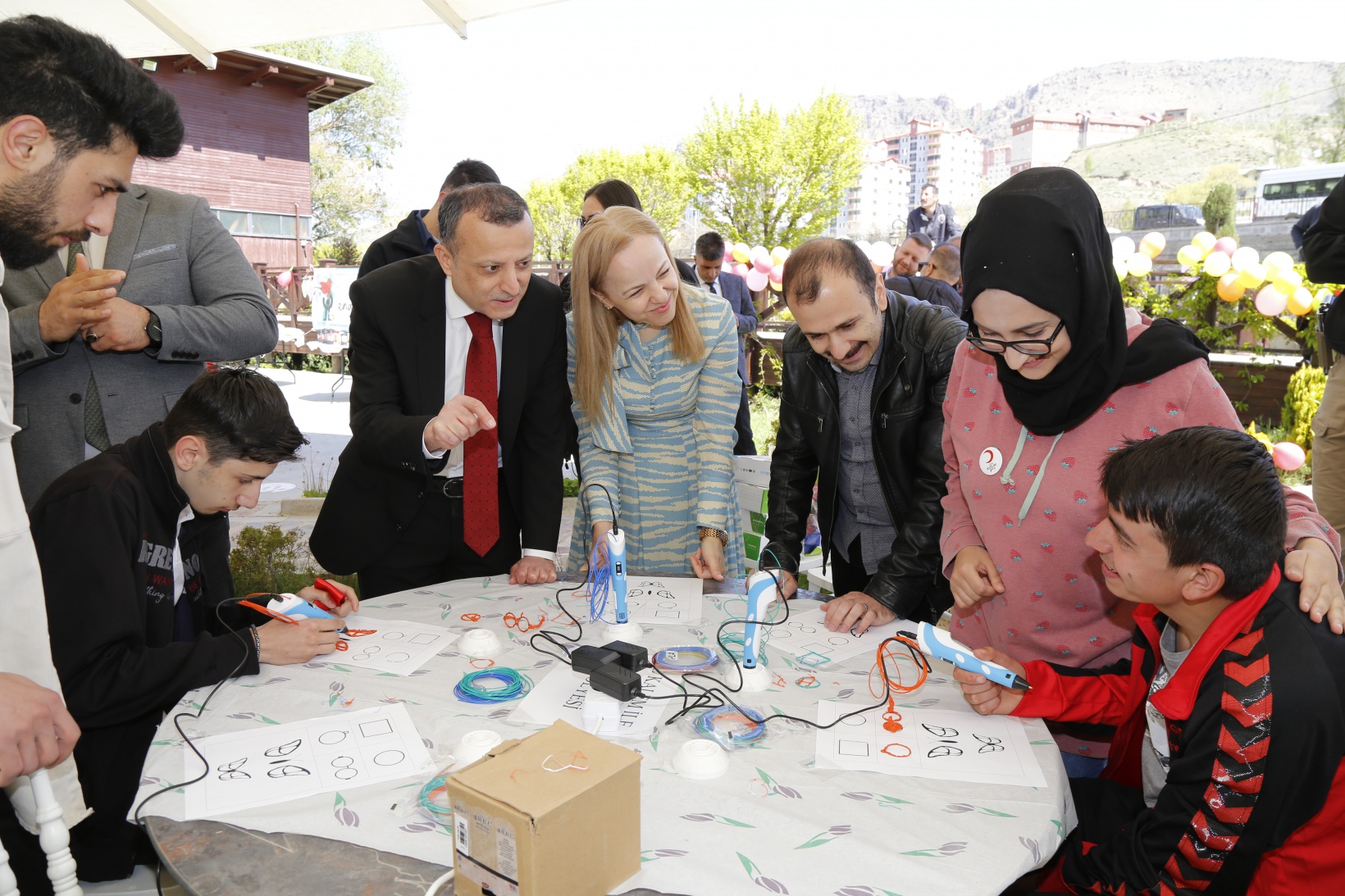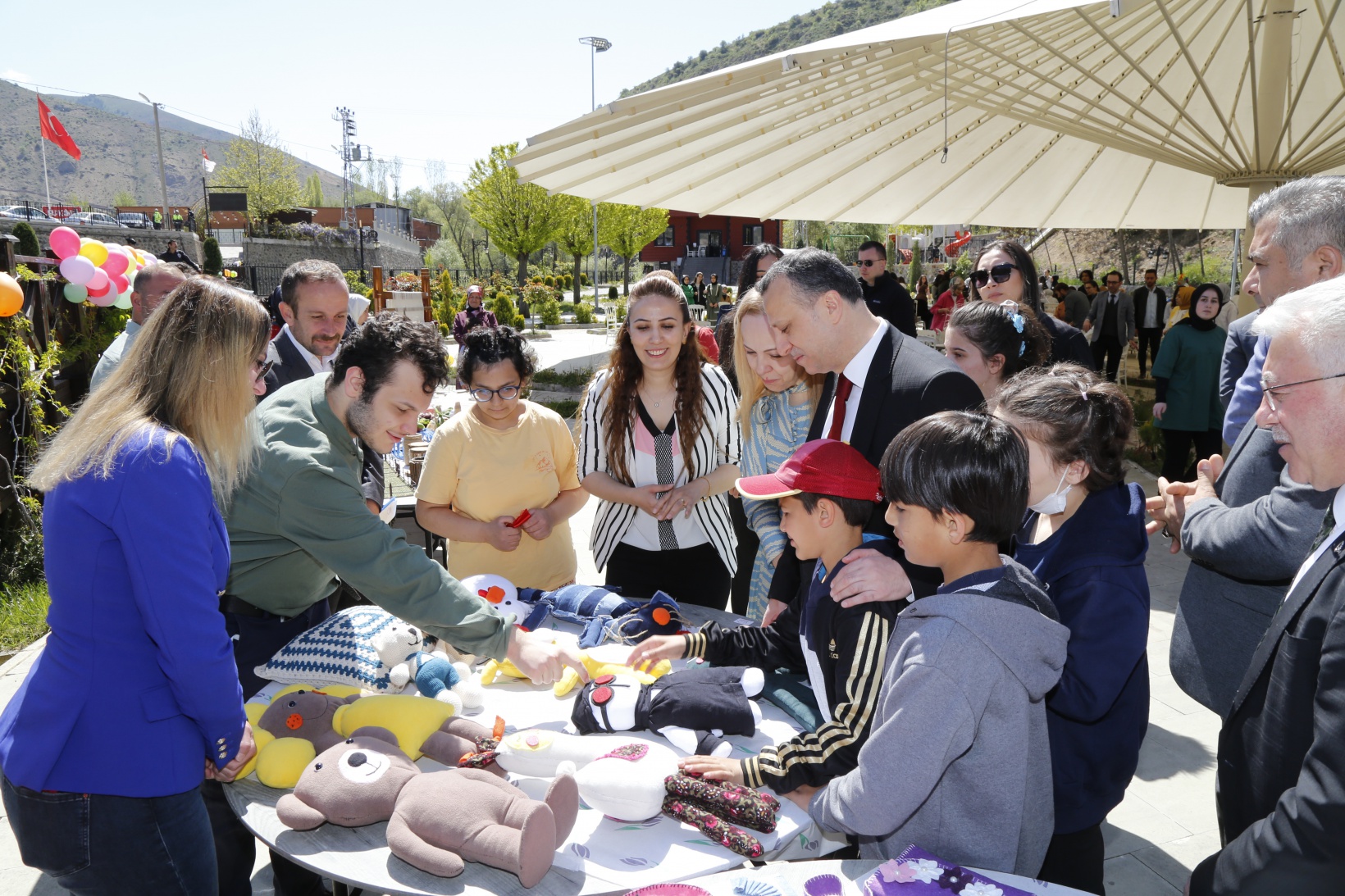 Gümüşhane Valisi Kamuran Taşbilek, açılışın ardından özel çocuklar tarafından yapılan ürünlerin stantlarını gezerek, çocuklarla konuştu ve tebrik etti.