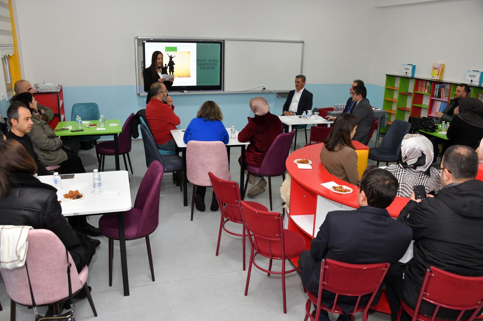 Okulun Z Kütüphanesi’nde gerçekleşen programda ilk olarak okulun rehber öğretmeni Arife Sarı tarafından projeyle ilgili sunum yapılarak proje hakkında anne-baba ile çocuk arasındaki iletişimin nasıl olması gerektiği konusunda bilgi verildi.