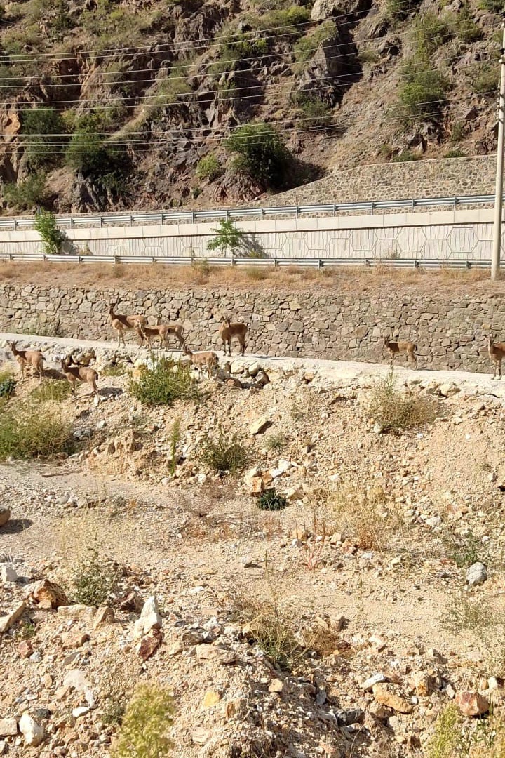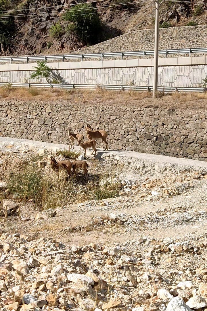Yolda yürüyen vatandaşlar tarafından Harşit Çayı kenarında su içerken fark edilen 10 civarındaki yaban keçisi cep telefonuyla kayıt altına alındı. Ürkek şekilde çay kenarında koşuşan yaban keçileri bir süre sonra gözden kayboldu.