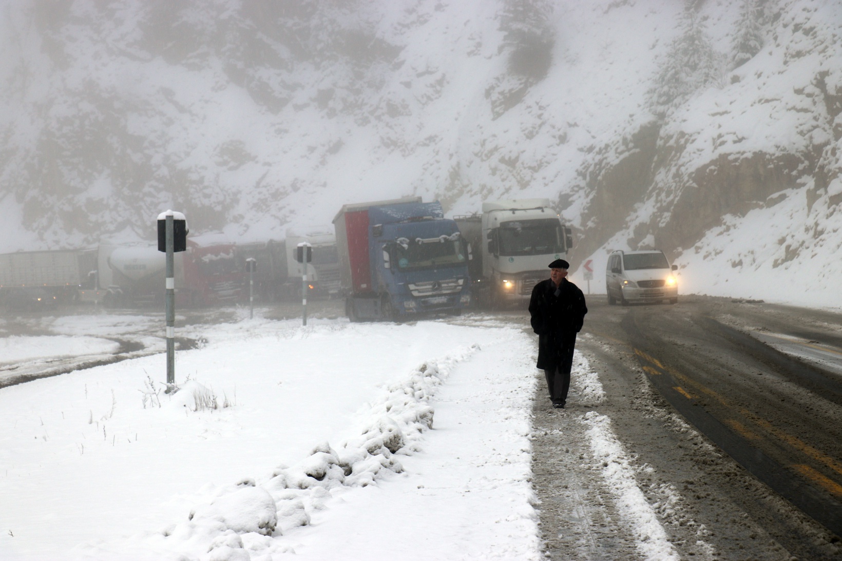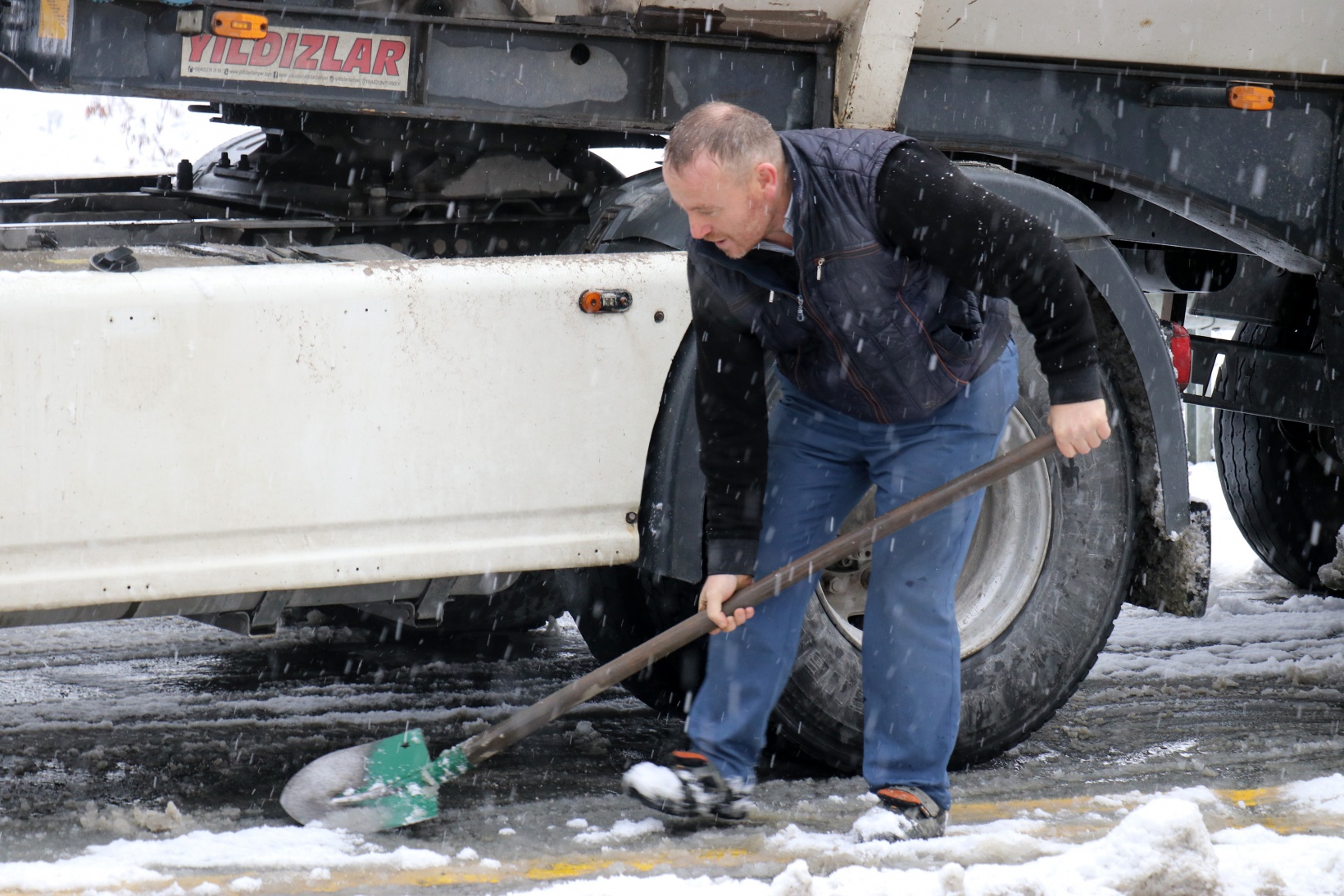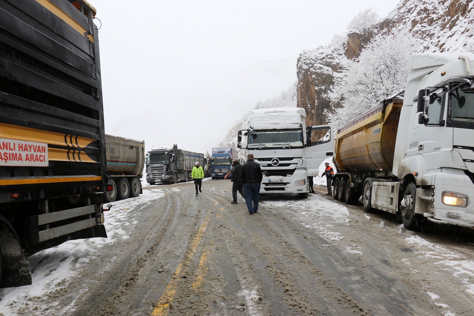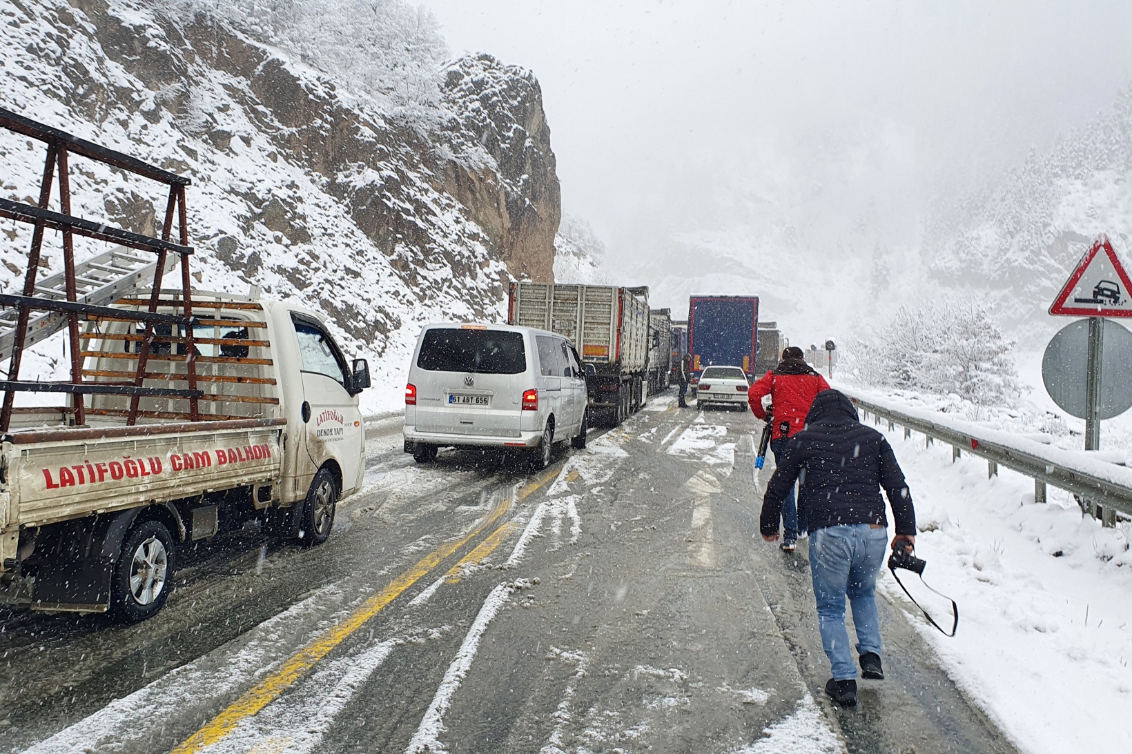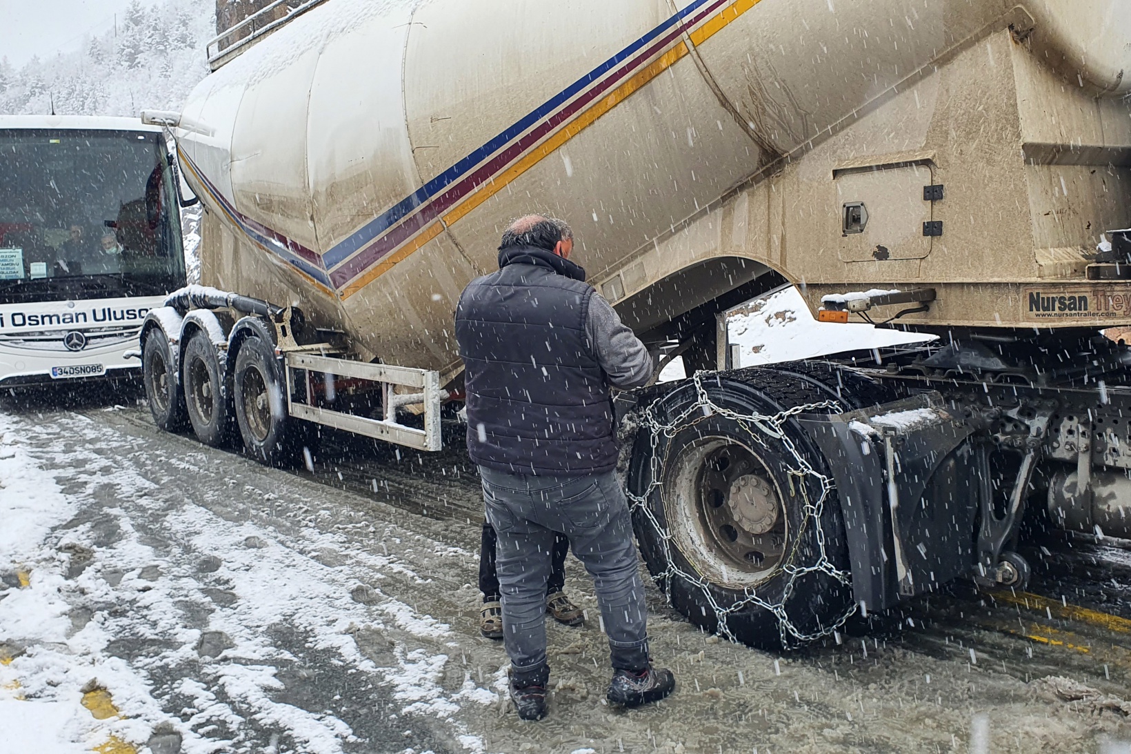 Özellikle tırların hazırlıksız yakalandığı kar yağışı nedeniyle kayganlaşan yolda çok sayıda tır kalırken, bazı araçlar zincirle bazı araçlar da yolun açılmasının ardından kurtarıldı.