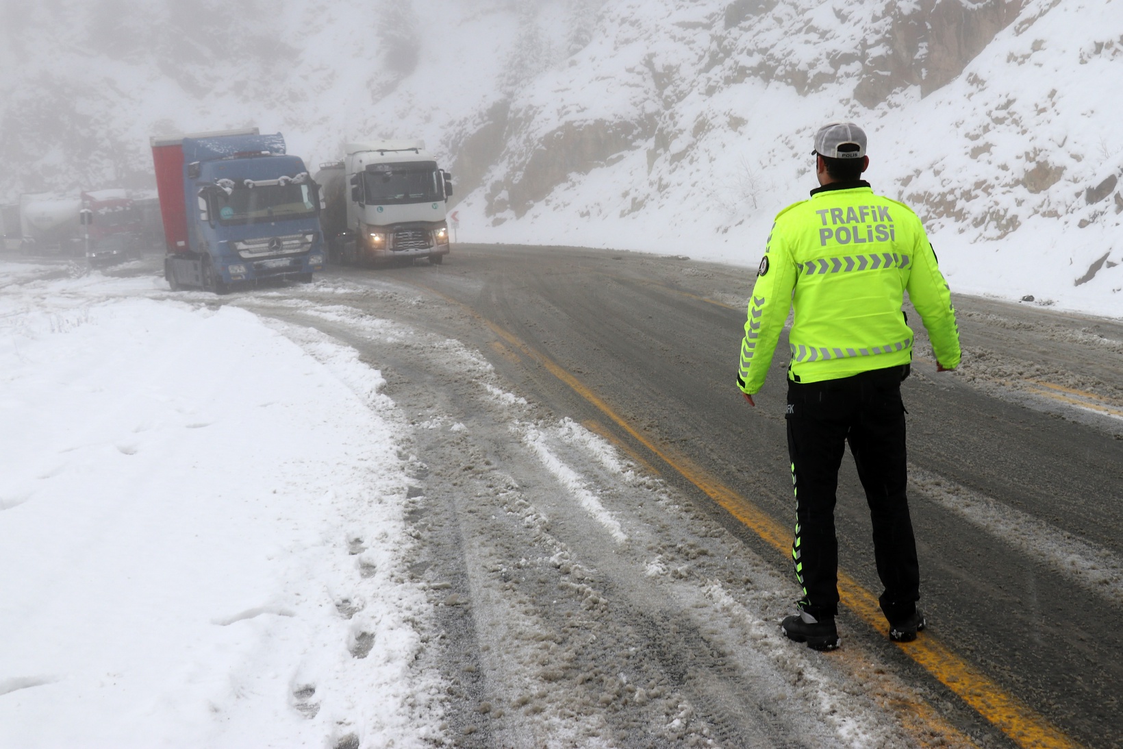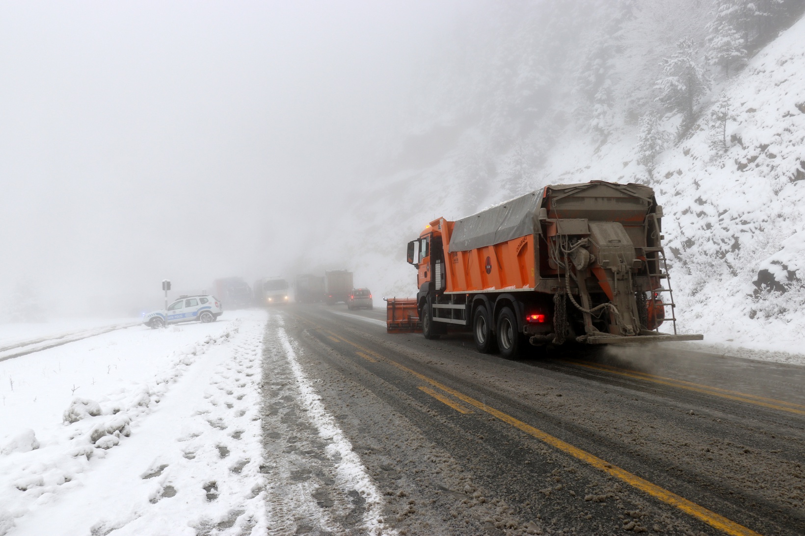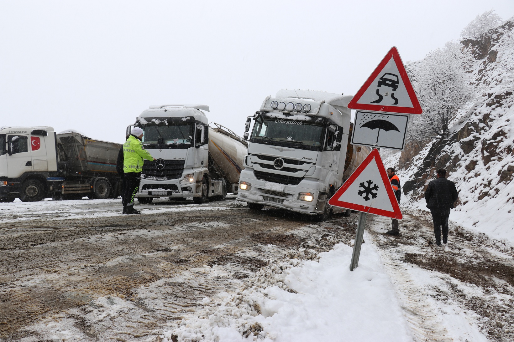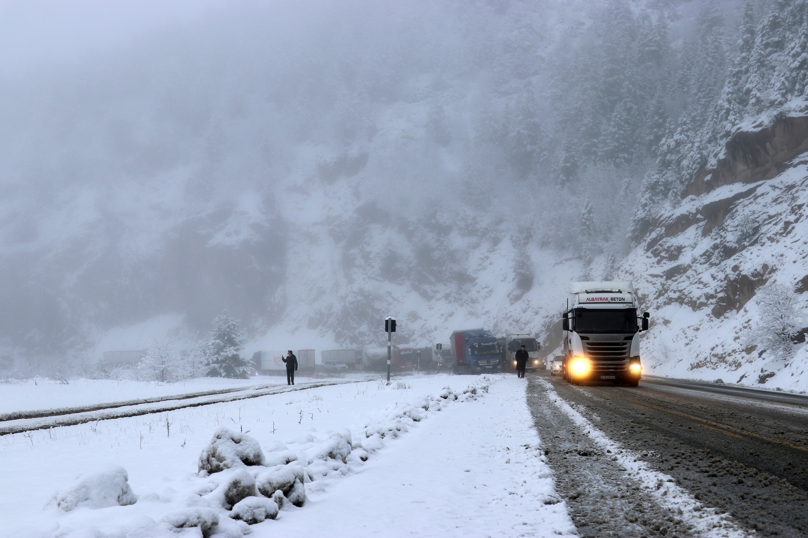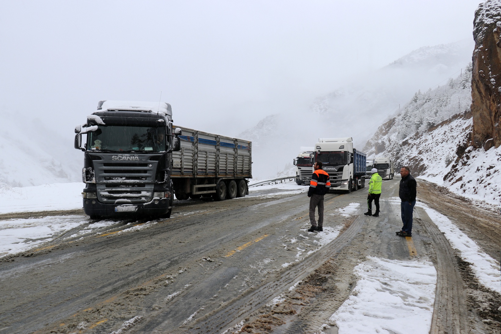 Karayolları ekiplerinin temizlik ve tuzlama yaptığı yolda Köstere mevkiinde 2 ayrı noktada tırlar yolda kaldı. Trafiğin tamamen kapanması nedeniyle bazı araçlar tali yolları kullandı.