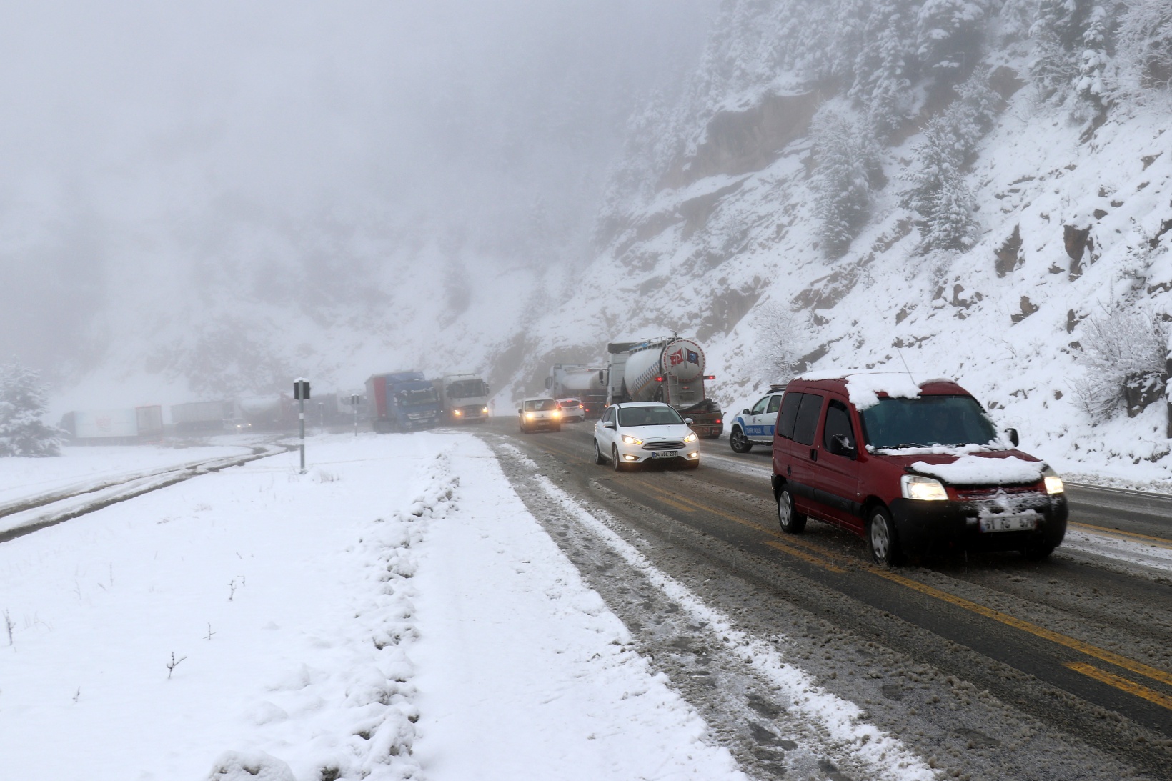 Öğlen saatlerinde başlayan ve kısa sürede 10 santimetreye ulaşan kar kalınlığı nedeniyle Gümüşhane’nin Torul ilçesi sınırlarındaki Zigana dağında ulaşımda aksamalar meydana geldi.