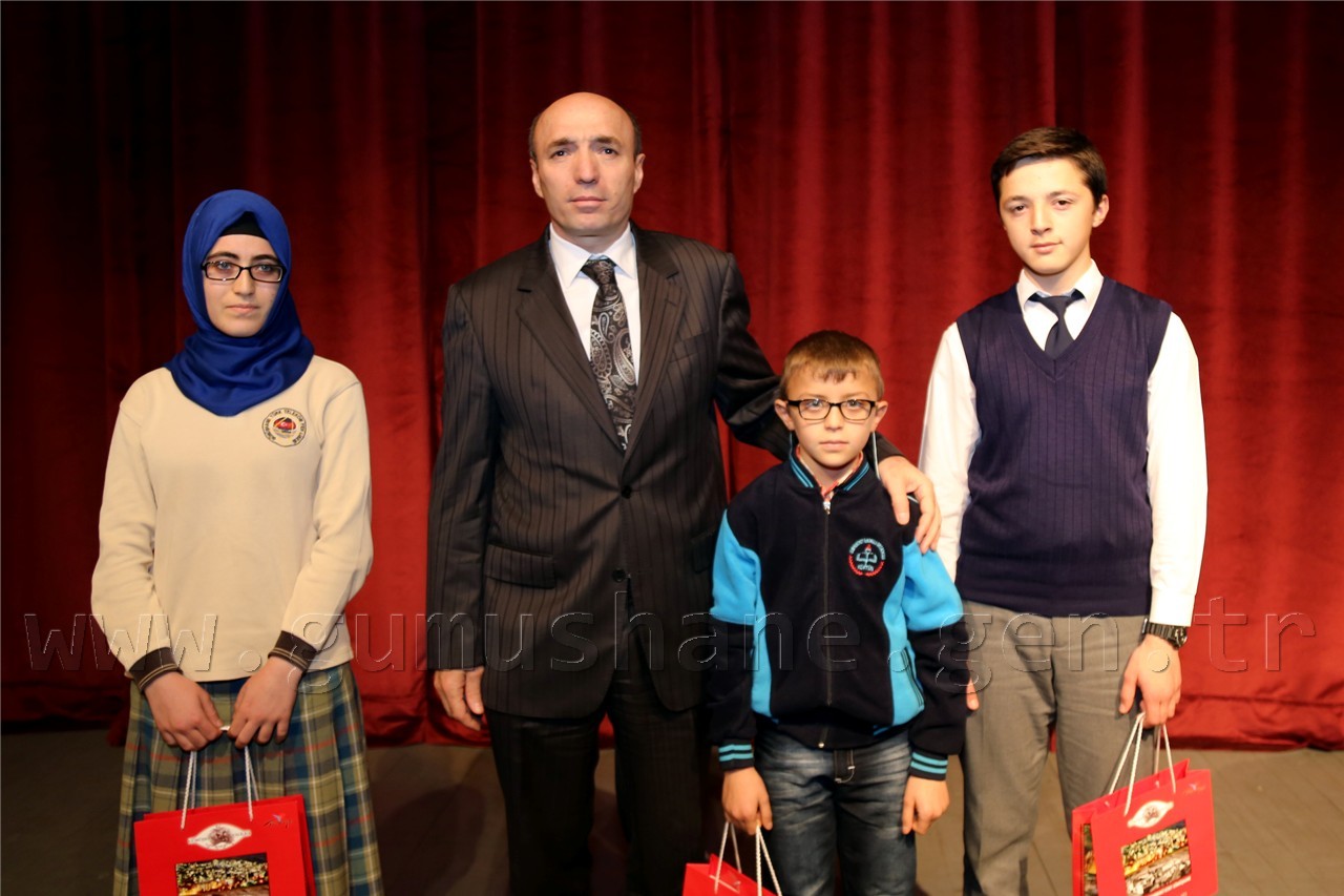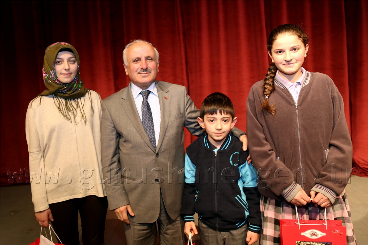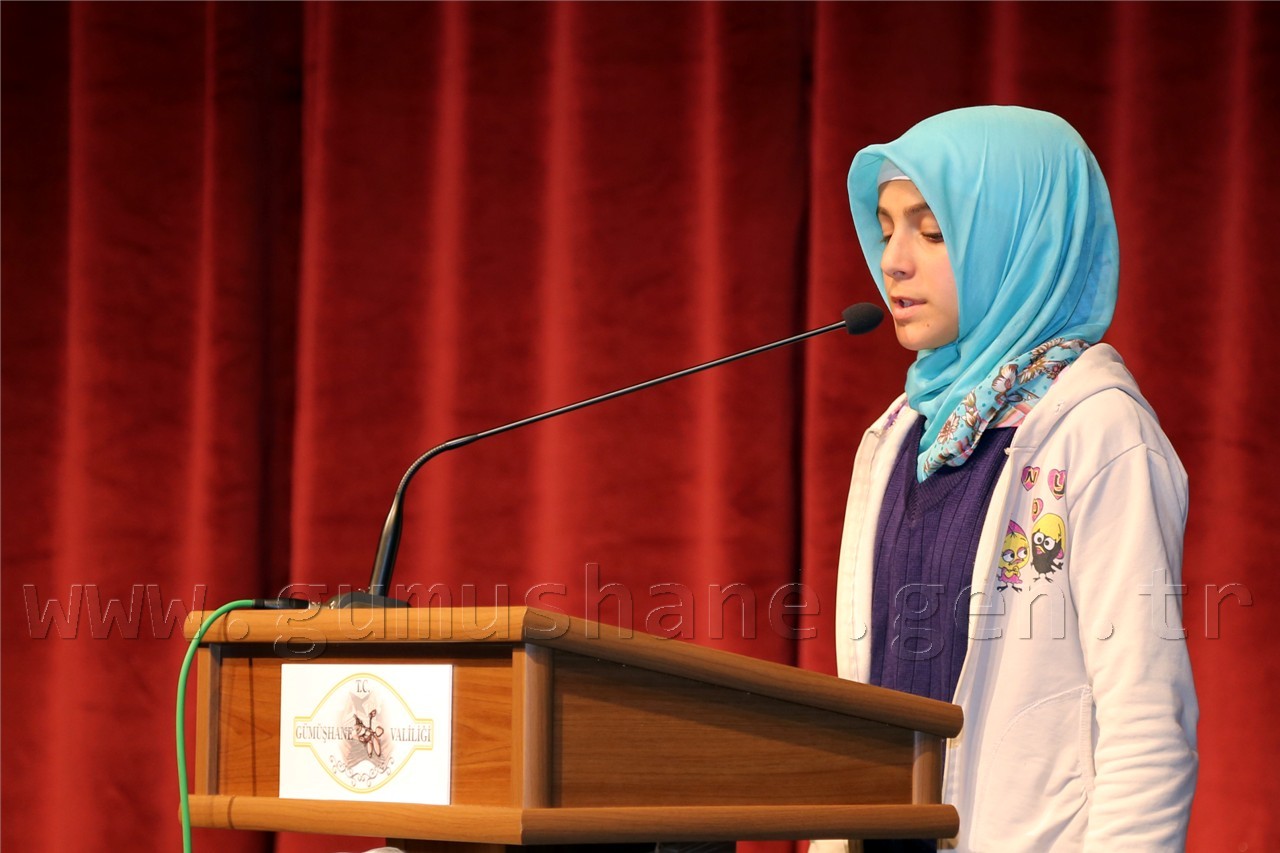 Gümüşhane Belgeselinin izlettirildiği programda hafta nedeniyle düzenlenen şiir yarışmasında birinci olan Arzular Ortaokulu öğrencisi Ravzanur Eren, ikinci olan Torul Yatılı Ortaokulu öğrencisi Nergiz Parıltan, üçüncü olan Torul Altınpınar Ortaokulu öğrencisi Yusuf Kıran, kompozisyon yarışmasında birinci olan Ali Fuat Kadirbeyoğlu Anadolu Lisesi öğrencisi Filiz Kır, ikinci olan Türk Telekom Fen Lisesi öğrencisi İlknur Özel, üçüncü olan Türk Telekom Fen Lisesi öğrencisi Hakime Coşkun ile resim yarışmasında birinci olan Kelkit Fatih Sultan Mehmet İlkokulu öğrencisi Ruşen Ali Sevinç, ikinci olan Cumhuriyet İlkokulu öğrencisi Metehan Baştan ve Taşlıca Vali Gazi Şimşek İlkokulu öğrencisi Timurhan Güldalı'ya ödülleri protokol üyeleri tarafından verildi, kompozisyon ve şiir dalında birinci olan eserler, sahipleri tarafından okundu.