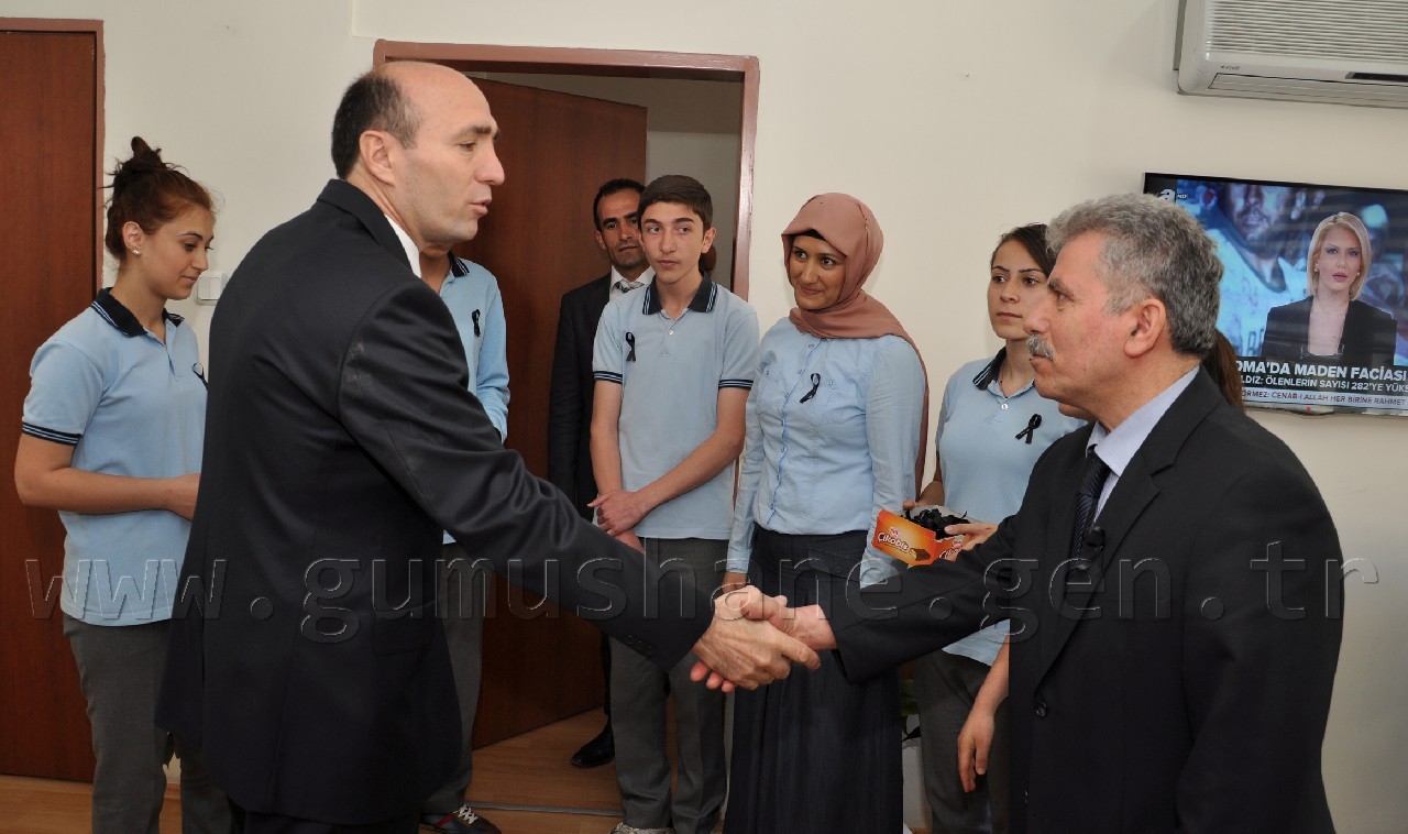 İl Milli Eğitim Müdürü Şahinkaya “Ülke olarak derin bir acı yaşadığımız bu zor günleri milletimizin metaneti, sabrı ve duası ile aşacağız. Ülkemizde 3 günlük ulusal yas ilan edilmiş, tüm yurtta ve dış temsilciliklerimizde bayraklar yarıya indirilmiş ve ulusal yas nedeniyle resmi tören dışındaki 19 Mayıs kutlamaları da iptal edilmiştir. Öğrencilerimizin bu asil davranışı karşısında bu aziz milletin her zorlukta bir bütün olarak kenetlendiğini, zorlukları metanetle aştığının bir nişanesi olarak gözlerimizi yaşartmış ve aynı zamanda bizleri gururlandırmıştır. Rabbim bu maden faciasında ekmekleri uğruna hayatını kaybeden kardeşlerimizin şehitlik makamını ali eder inşallah. Rabbim ülkemize böylesi acılar bir daha yaşatmasın. Bu acı bizi birbirimize kenetlesin. Hayatını kaybeden kardeşlerimize rahmet, kederli ailelerine sabırlar diliyorum” dedi.
