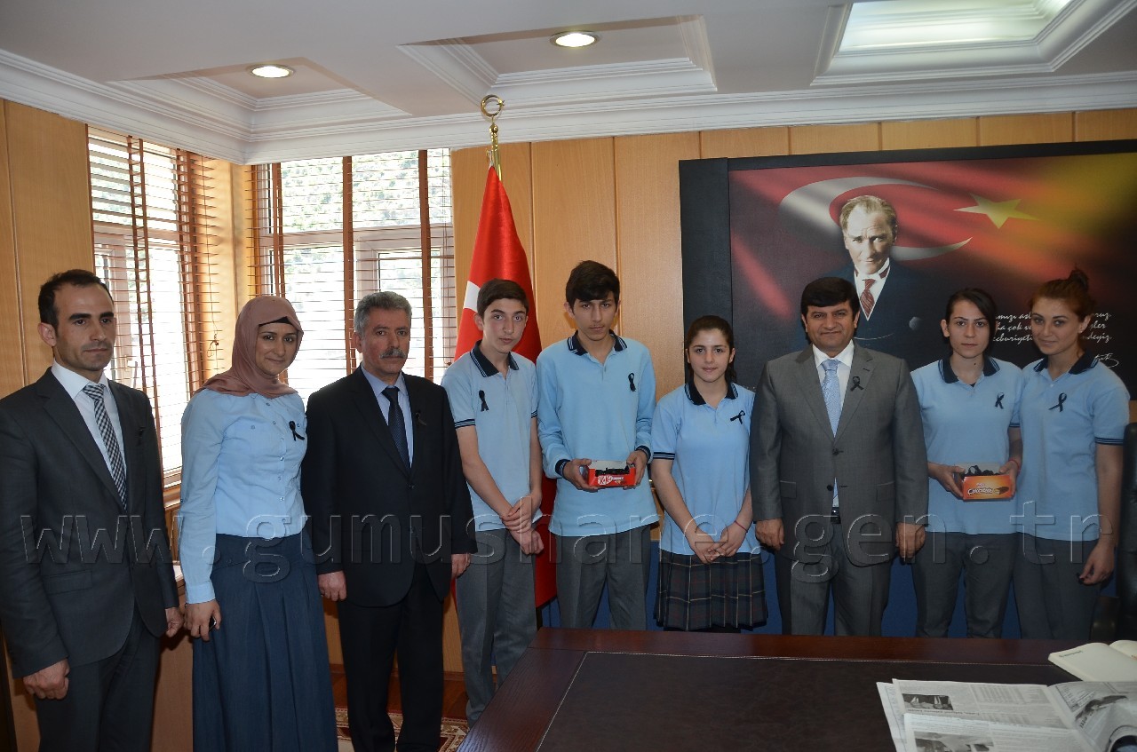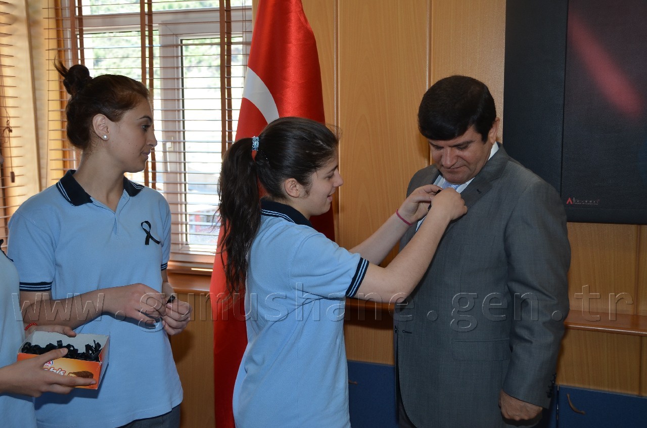 Daha sonra İl Milli Eğitim Müdürü Muhammet Şahinkaya ve kurum personelini ziyaret eden öğrenciler tüm personelin yakasına siyah kurdele taktı.