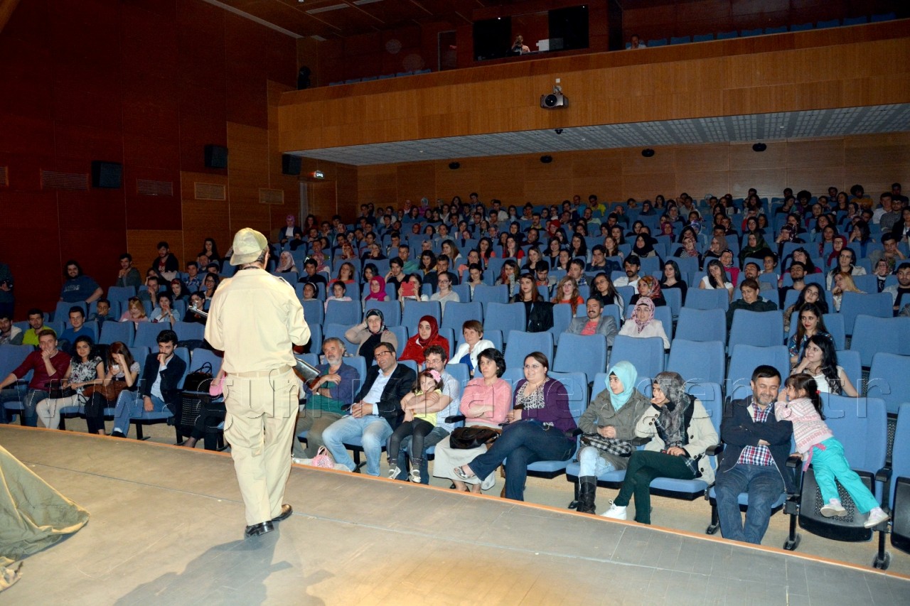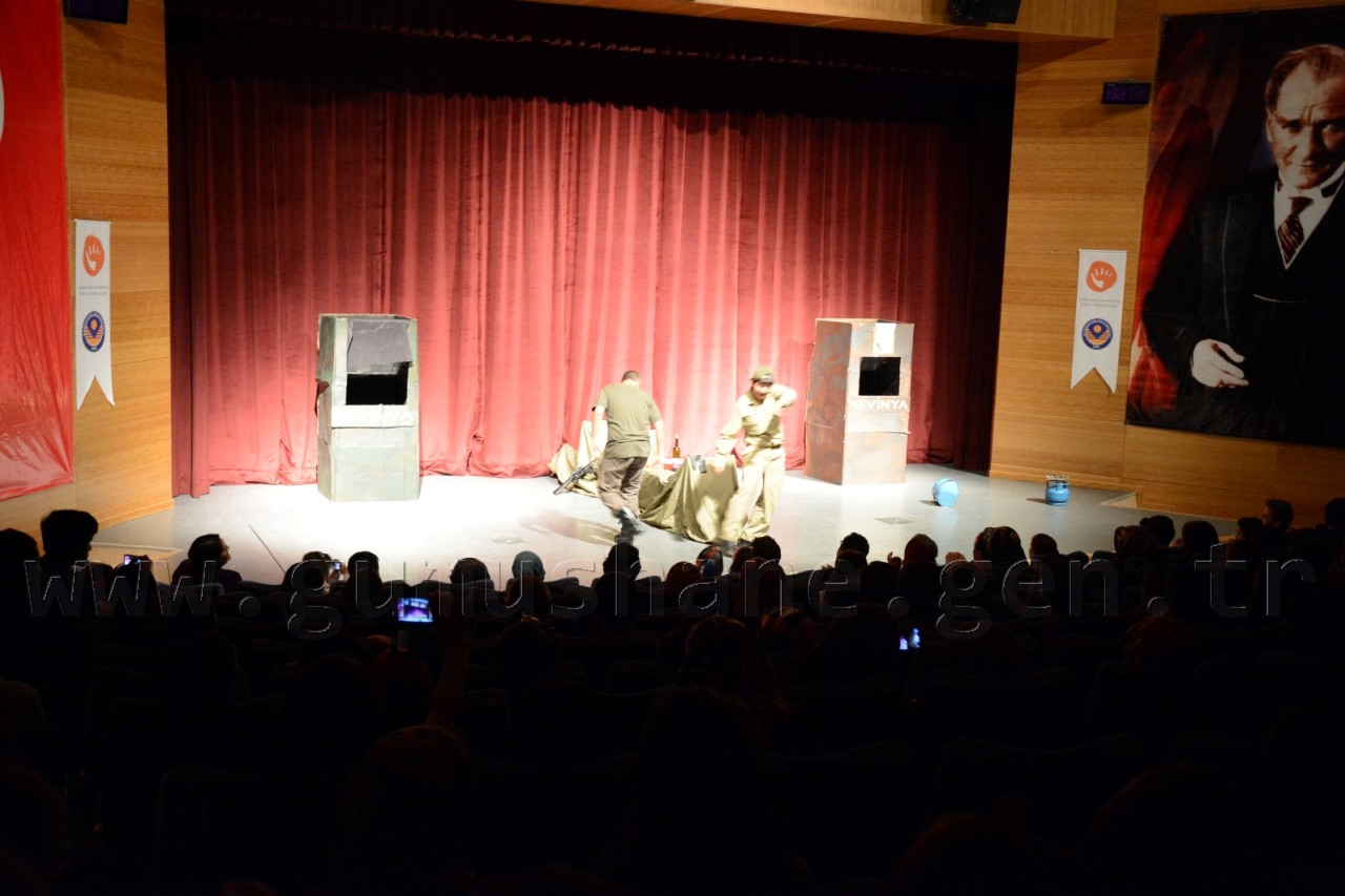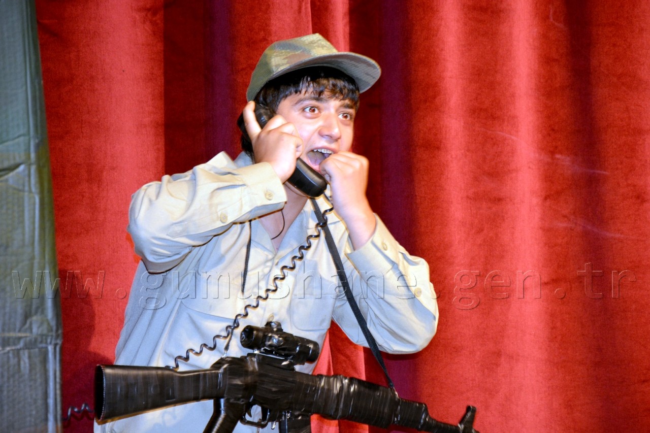 Gümüşhane Kültür Merkezinde sahnelenen tek perdelik oyunda zihinsel engelli Mustafa Türken ve Nazım İriç sahnede üstün performans sergiledi.