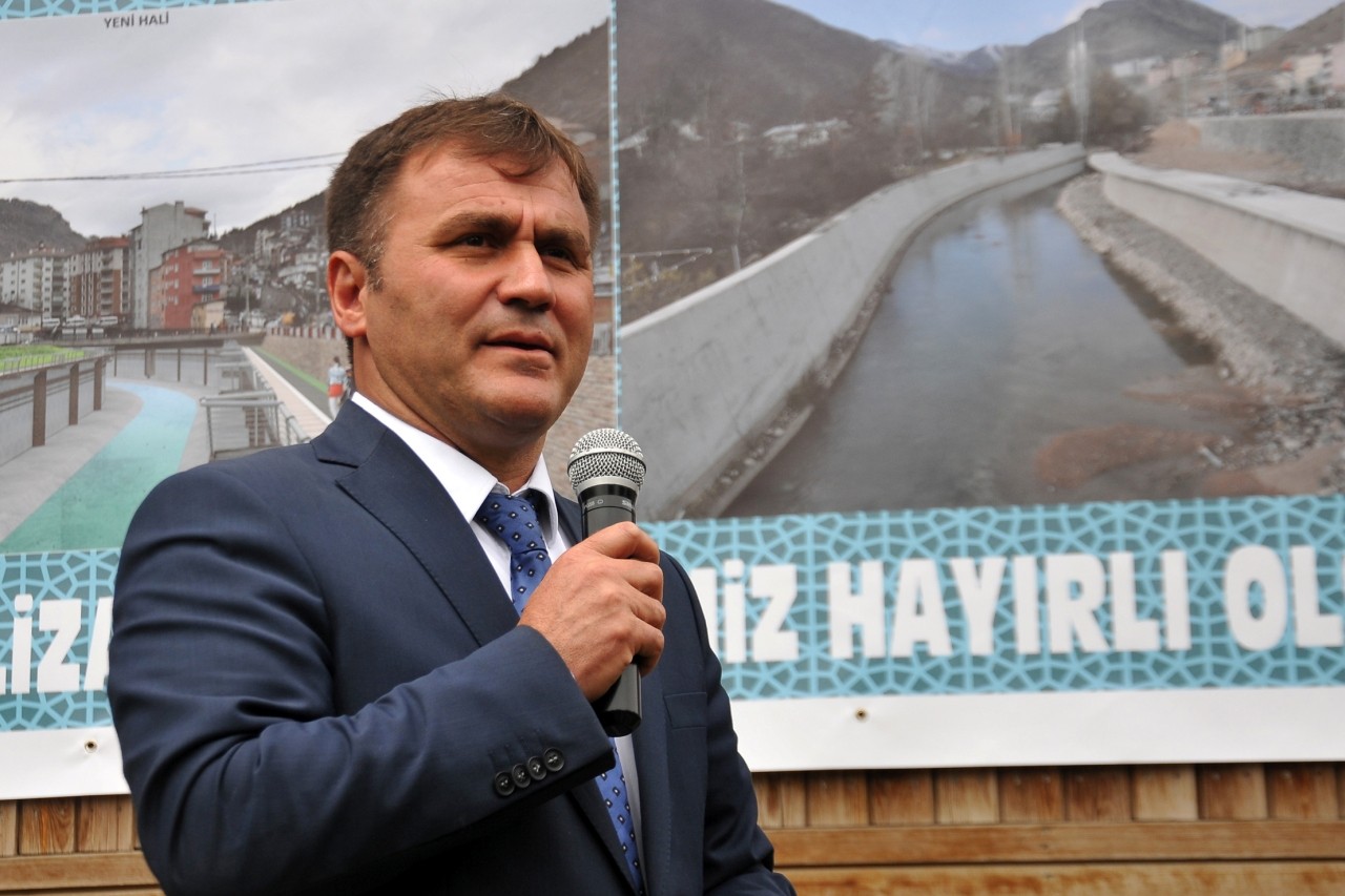 Belediye Başkanı Ercan Çimen ise Gümüşhane’de değişim ve dönüşüm hamlesini başlattıklarını kaydederek, “2015 yılı daha önceki beyanlarımızdaki gibi atılım yılımız olacak. Gümüşhane’yi nakış nakış öreceğiz ve Gümüşhane şantiye olacak dedik. Ve sözümüzü tuttuk. Rutin belediyecilik işlerini yaptık, yapıyoruz. Son günlerde şehrimizin önemli noktalarında gençlik parkı, modern pazaryeri gibi belki de 100 yılda damgasını vuracak projelerimize ilk kazmaları vurduk. Bugün de Harşit’imizi kanalizasyon atıklarından kurtaracak olan projemizin başlangıcını veriyoruz. Yılların biriken sorunları üst üste geldiği için buradan başlayalım dedik. Orman ve Su İşleri Bakanımız Prof. Dr. Veysel Eroğlu ve ekibine teşekkür ediyorum. Türkiye’de ilk defa Gümüşhane’de Harşit Çayı Dere Islahı projesine ek olarak yaklaşık 3 milyon liralık bir proje bu. İller Bankasında hazırdı, revize projelerimiz yapıldı. Yaklaşık 13 bin 650 metre buradan başlayıp Balyemez konağına kadar gidecek, oradan da arıtmamıza inşallah yüzde yüz şehrimizin kanalizasyonlarını arıtmaya bağlayacağız. Şuan şehrimizdeki kanalizasyon hattından geçen borularımızın en büyüğü 300’lük borulardan oluşuyor. Ancak hazırladığımız proje ile en küçüğü 300’lük olmak üzere 800’lük borular derenin her iki yakasına da döşenecek. Bu sayede şehrin altyapı sorunu kalmayacak. Harşit Çayı’nı kanalizasyon atıklarından arındırıp, o kötü görünümden kurtaracağız. Harşit Çayı daha güzel bir Gümüşhane için şehrin aynası olacak” ifadelerini kullandı.