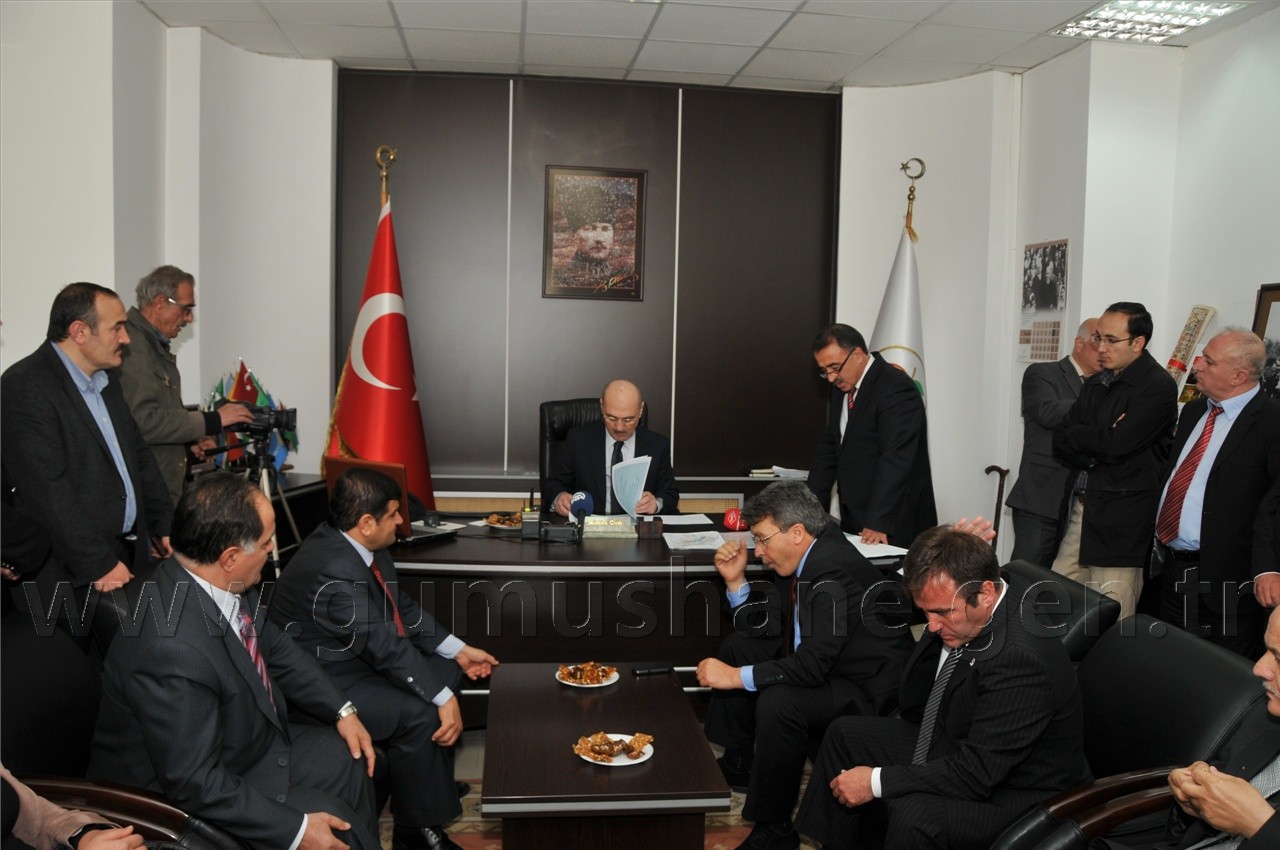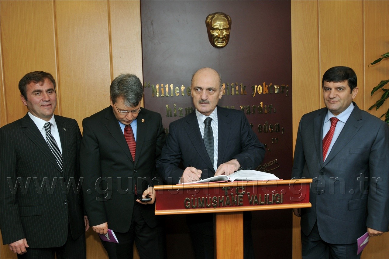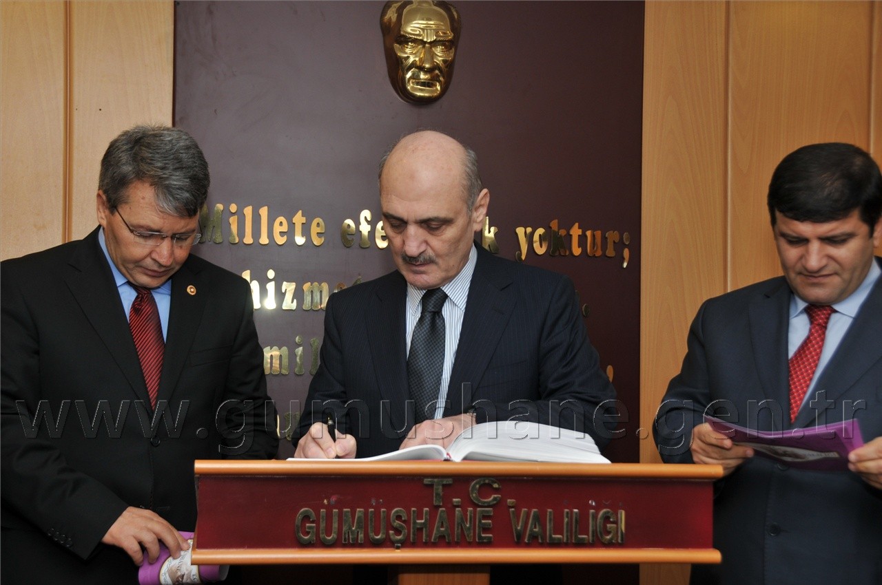 Karayolu ile Bayburt’tan Gümüşhane’ye gelen Bakan Bayraktar’ı şehir protokolü Valilik binası önünde resmi tören ile karşıladı. Daha sonra Valilik Makamında Vali Dr. Yusuf Mayda, Milletvekili Feramuz Üstün, Belediye Başkanı Mustafa Canlı, AK Parti İl Başkanı Ercan Çimen ve diğer yetkililerle bir araya gelen Bakan Bayraktar, Valilik Şeref defterini imzaladı.