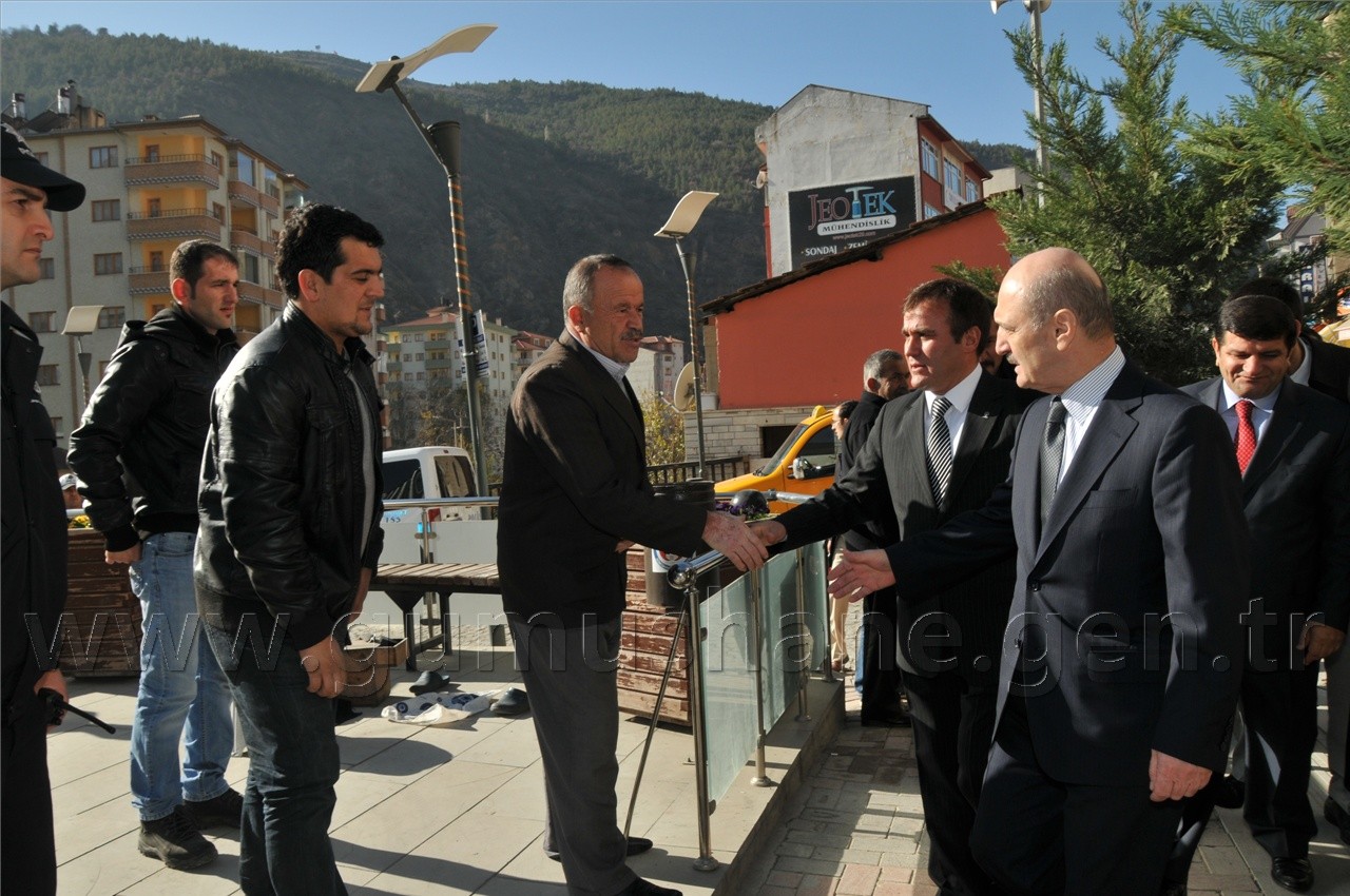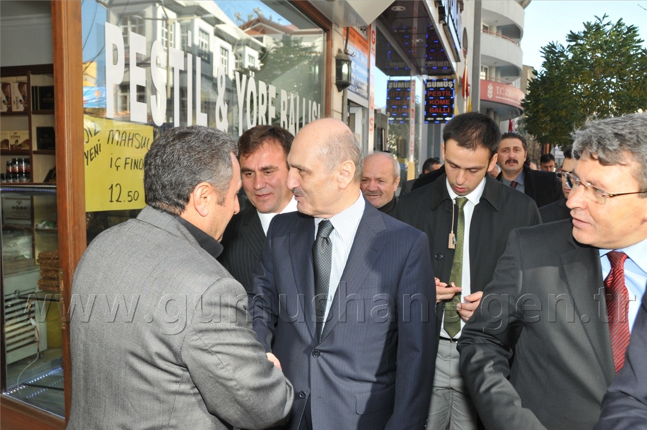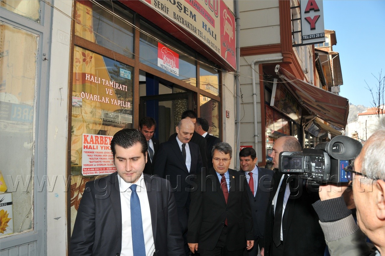 Buradaki toplantının ardından ilçe ve belde belediye başkanları ile basına kapalı bir toplantı gerçekleştiren Bakan Bayraktar, yürüyerek Belediye Başkanlığına geçti. Bu sırada yolda gördüğü esnaf ve vatandaşlarla sohbet eden Bayraktar, Belediye Başkanlığı kapısında Başkan Mustafa Canlı ve idareciler tarafından karşılandı.