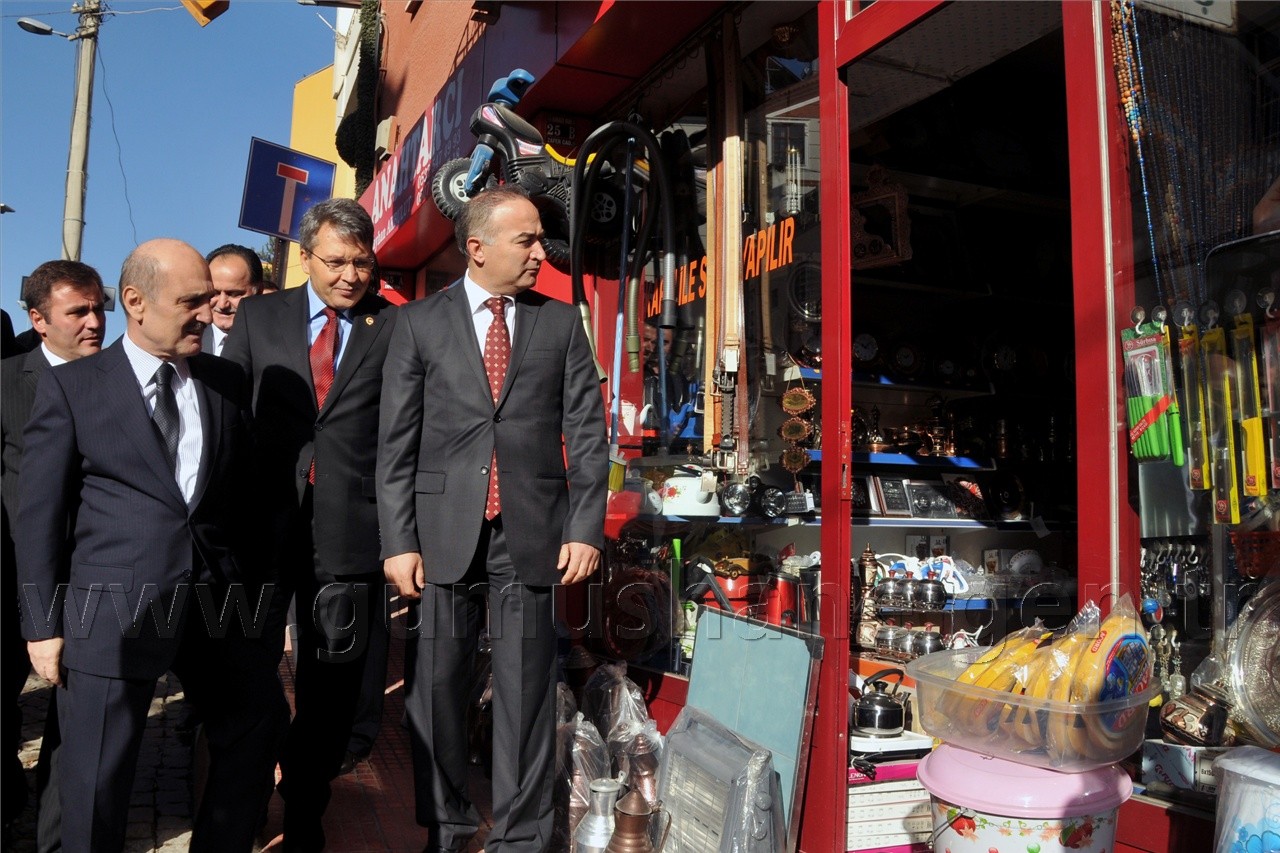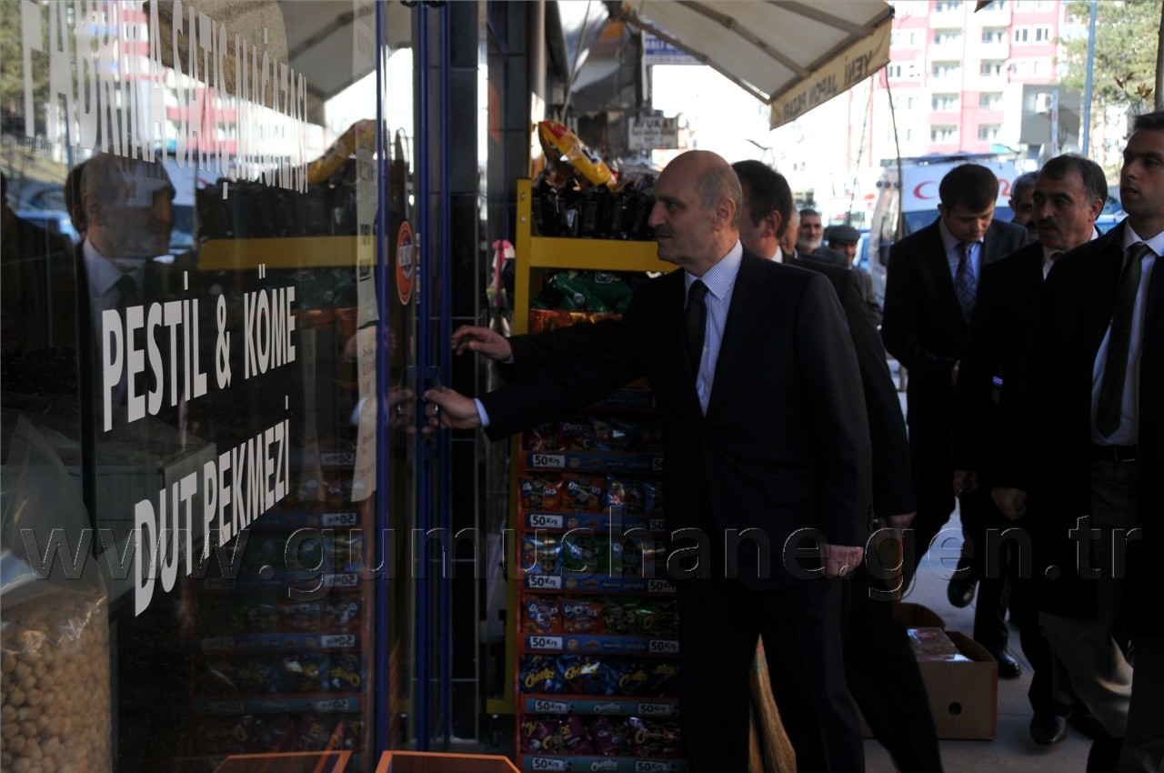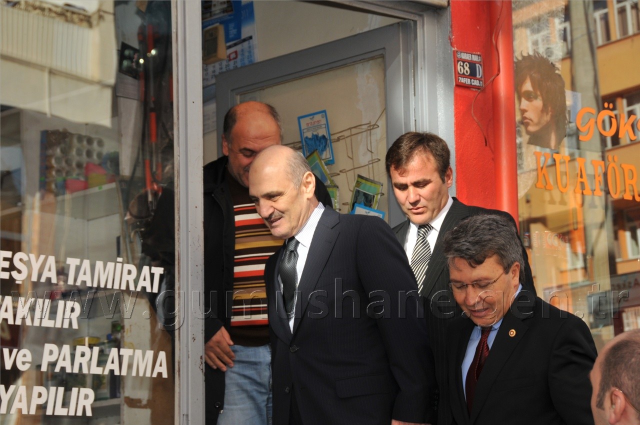 Buradaki toplantının ardından ilçe ve belde belediye başkanları ile basına kapalı bir toplantı gerçekleştiren Bakan Bayraktar, yürüyerek Belediye Başkanlığına geçti. Bu sırada yolda gördüğü esnaf ve vatandaşlarla sohbet eden Bayraktar, Belediye Başkanlığı kapısında Başkan Mustafa Canlı ve idareciler tarafından karşılandı.