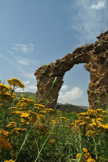 Milattan Sonra 62-72 yılları arasında inşa edildiği tahmin edilen yapıdan günümüze; çeşme, hamam ve kale duvarları başta olmak üzere, çok sayıda askeri ve sivil mimariye ait eser kalmıştır. Bu eserlerin en önemlilerinden bir tanesi de, 47 kemerli yapıldığı bilinen ancak günümüzde sadece 5 kemerinin ayakta kalabildiği su kemeridir.