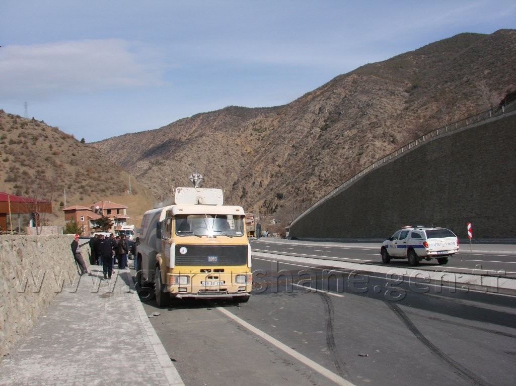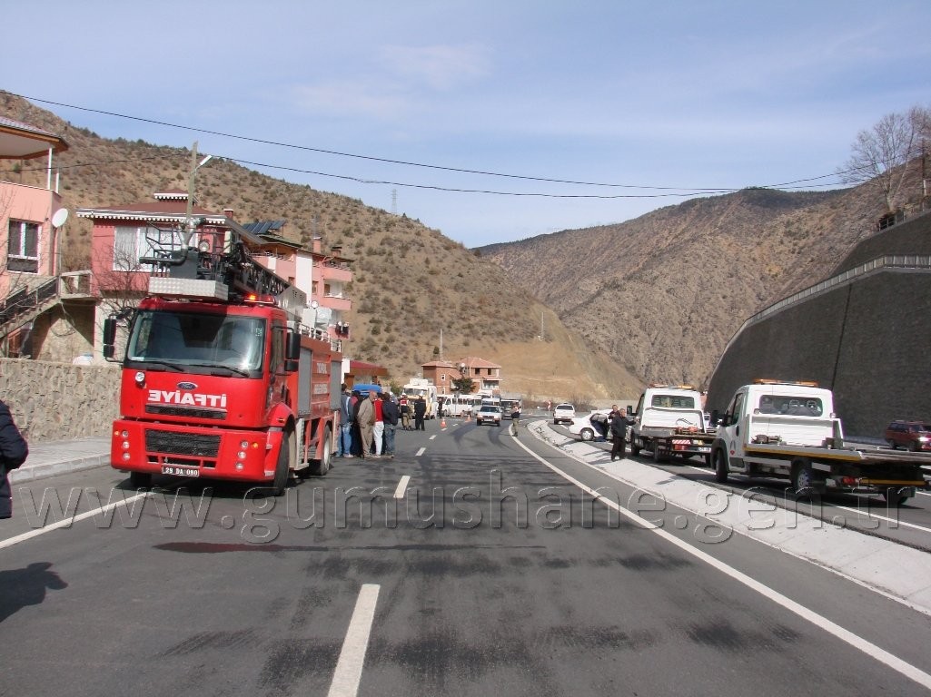 Torul-Gümüşhane karayolu üzerinde meydana gelen kazada, tankere çarpan otomobil yola savrulunca bu kez de arkadan gelen Osman Kandaz yönetimindeki 29 AD 766 plakalı minibüs otomobile çarptı.