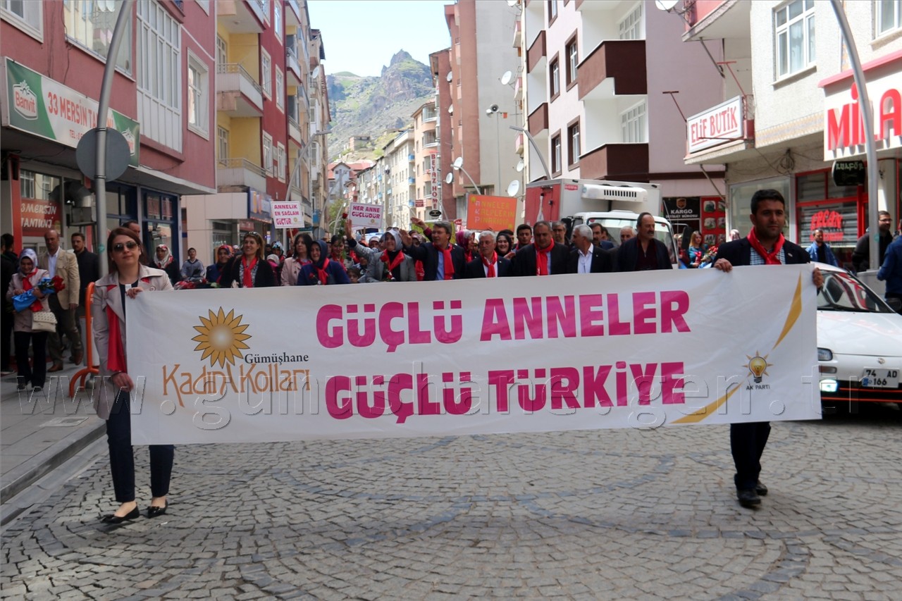 AK Parti Gümüşhane İl Kadın Kolları Başkanlığı, Anneler Günü nedeniyle ‘Güçlü Anneler, Güçlü Türkiye’ sloganıyla yürüyüş düzenlendi.
