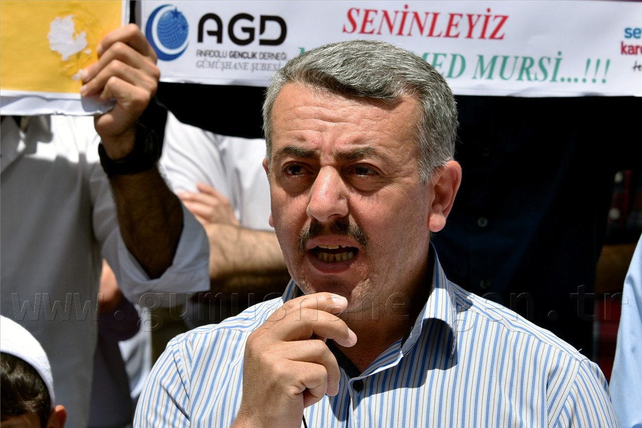 Eylemde konuşan AGD Gümüşhane Şube Başkanı Naci Şenel, İslam coğrafyasının kadim toprakları Mısır ve Bangladeş’te hukuk cinayetlerinin işlenmeye devam ettiğini, 3 Temmuz 2013’te darbeyle devrilen Mısır Cumhurbaşkanı Muhammed Mursi ile ilgili idam kararının Kahire Ceza Mahkemesi tarafından onaylandığını, Muhammed Mursi’nin yanı sıra aralarında Yusuf El Kardavi’nin ve Özgürlük ve Adalet Partisi'nin genel sekreteri Essam El Erian’ın da olduğu 106 kişi hakkında verilen idam cezalarının da aynı mahkeme tarafından onaylandığını hatırlattı.