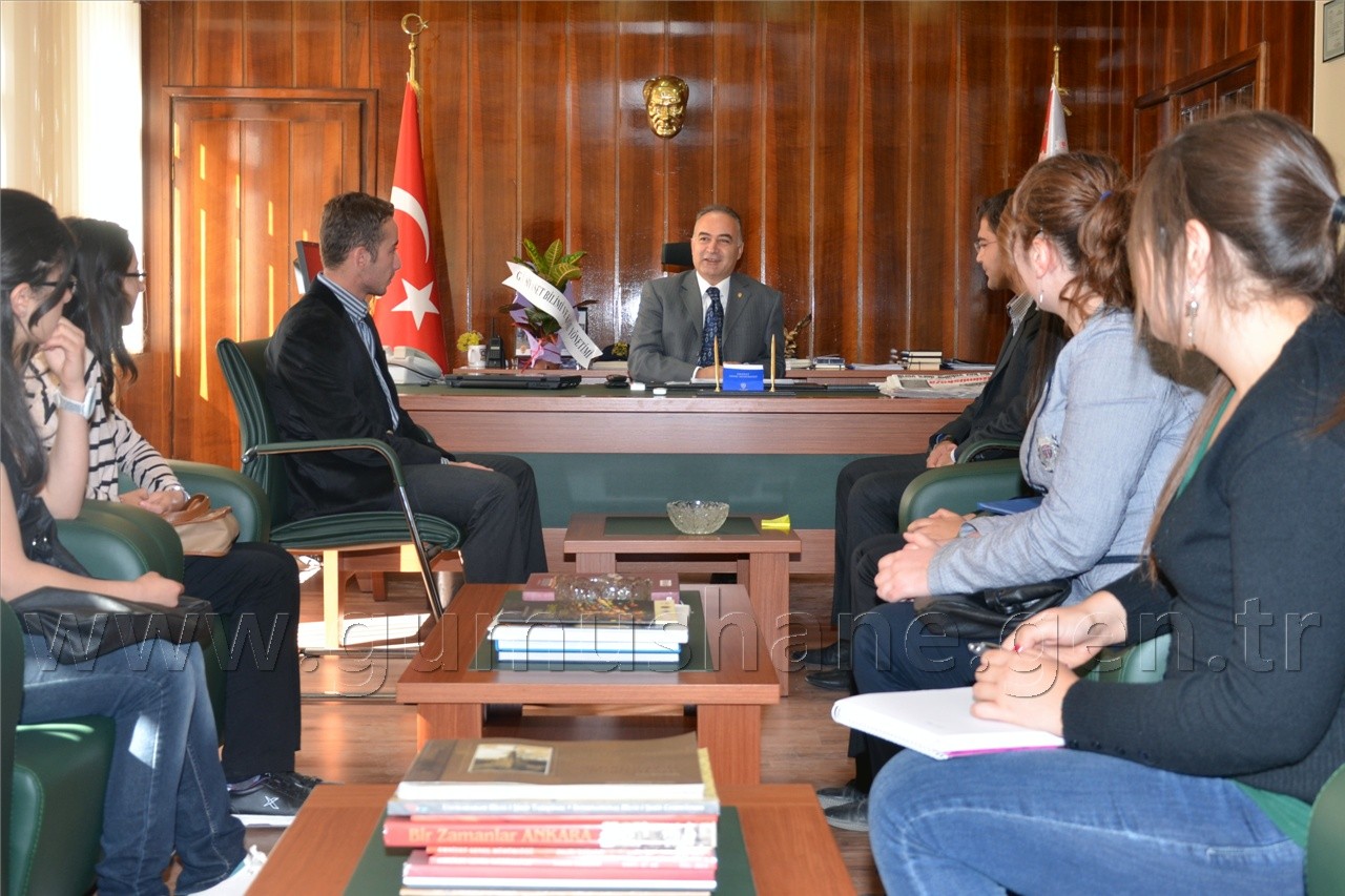 Gümüşhane Üniversitesi İktisadi ve İdari Bilimler Fakültesi Siyaset ve Kamu Yönetimi Bölümü Öğrenci Temsilcisi Yasin Doğan ve bölüm öğrencilerinden oluşan bir grup öğrenci, İl Emniyet Müdürü Hüseyin Ümit Yüksel’i makamında ziyaret etti.