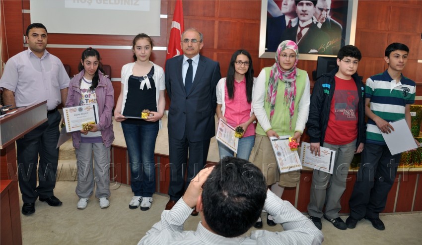 Ağaç’ın sunumunun ardından Orhan Yüce 3. Matematik ve Fen Bilimler Olimpiyatında dereceye giren ilk on öğrenci ve ilk üç okula ödülleri Vali Dr. Yusuf Mayda, Vali Yardımcısı Armağan Önal ve İl Milli Eğitim Müdürü Hızır Aktaş tarafından verildi.