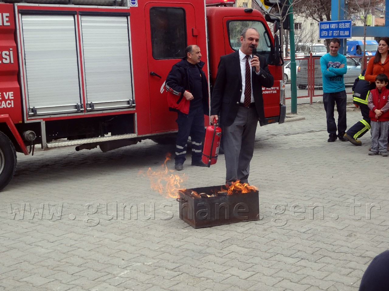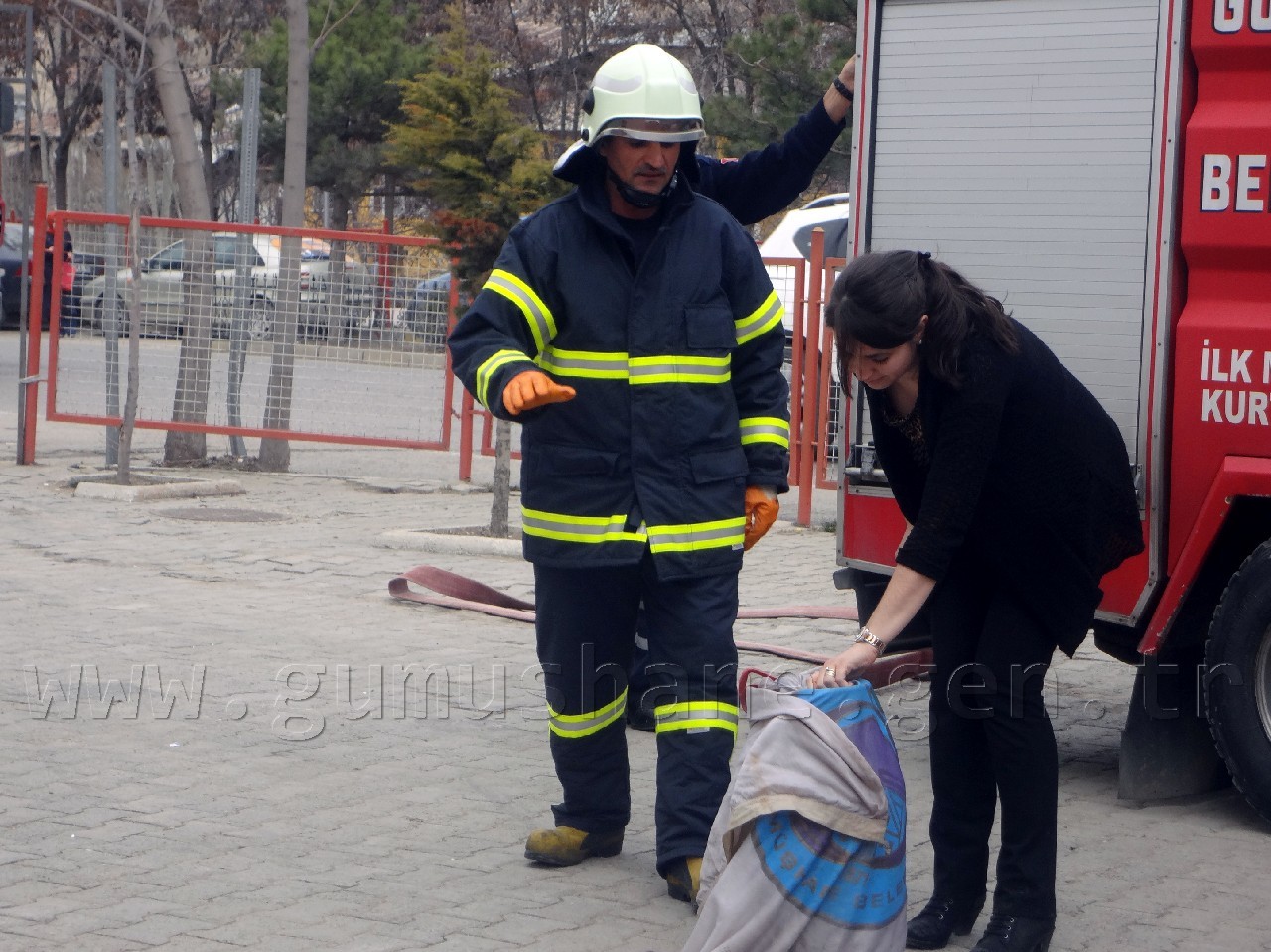 Tatbikata İtfaiye Müdürü Harun Şeker, Okul Müdürü Akif Köse, öğretmenler, öğrenciler ve itfaiyeciler katıldı.