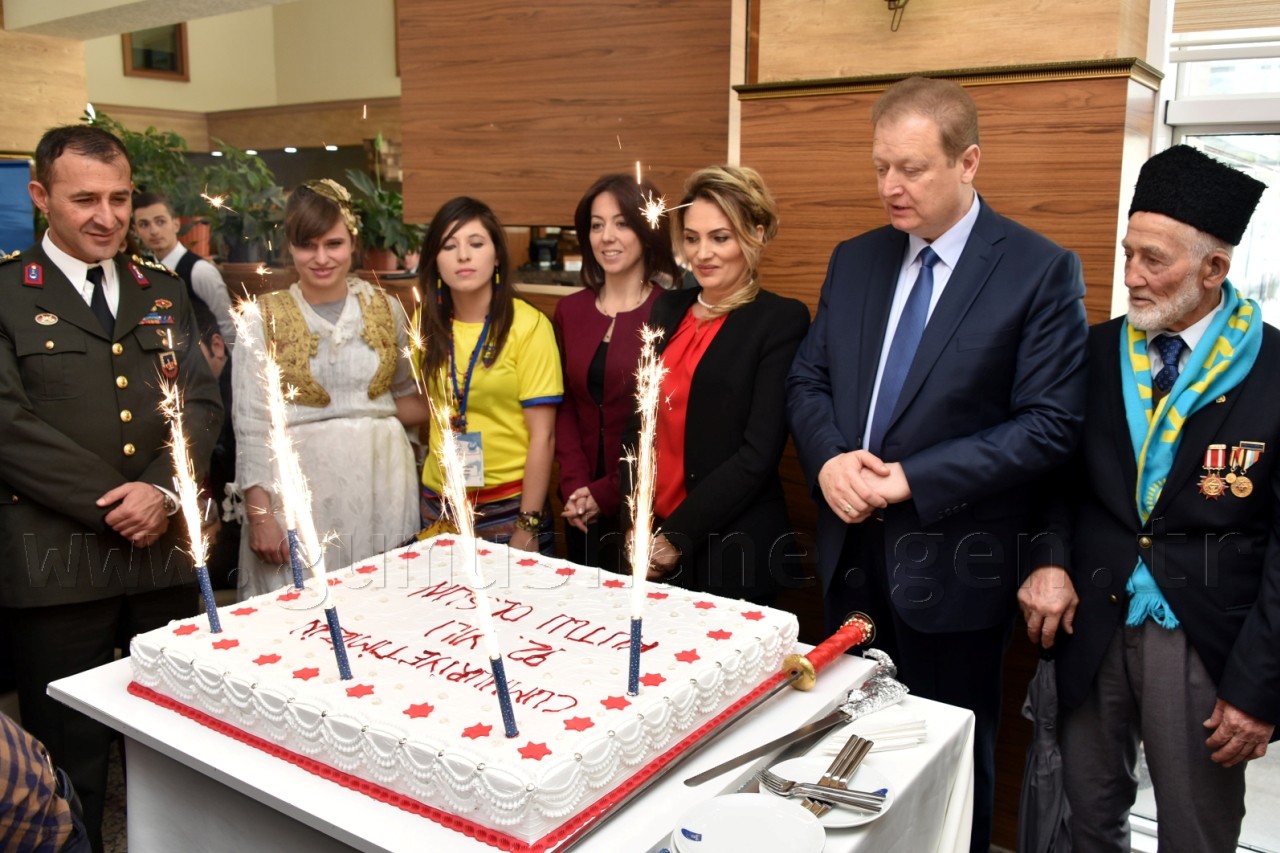 Yemeğin ardından üzerinde “Cumhuriyetimizin 92.yılı kutlu olsun” yazılı pasta Vali Yavuz, gaziler, protokol üyeleri ve Damla Projesine katılan öğrenciler tarafından kesildi.