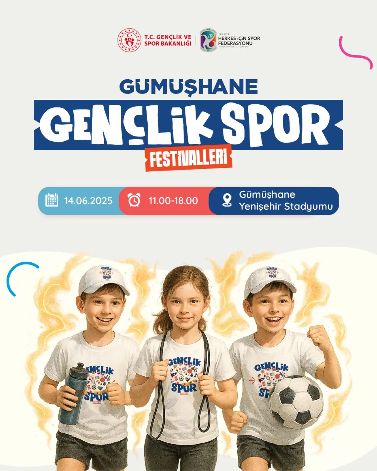 Gümüşhane, 14 Haziran'da sporun, eğlencenin ve birlikteliğin merkezi haline gelecek. Gümüşhane Gençlik ve Spor İl Müdürlüğü ile Herkes İçin Spor Federasyonu'nun iş birliğinde düzenlenecek 'Gençlik ve Spor Festivali', şehirde kapsamlı bir spor şöleni yaşatacak.