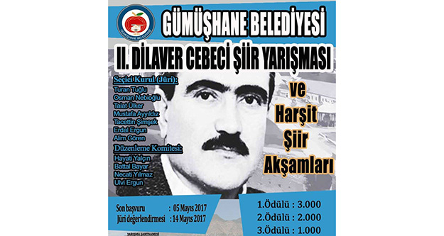 Gümüşhane Belediyesi, 2008 yılında yaşamını yitiren ‘Türkiyem’ şiirinin yazarı Gümüşhaneli ünlü şair Dilaver Cebeci adına para ödüllü şiir yarışmasının ikincisini düzenliyor.