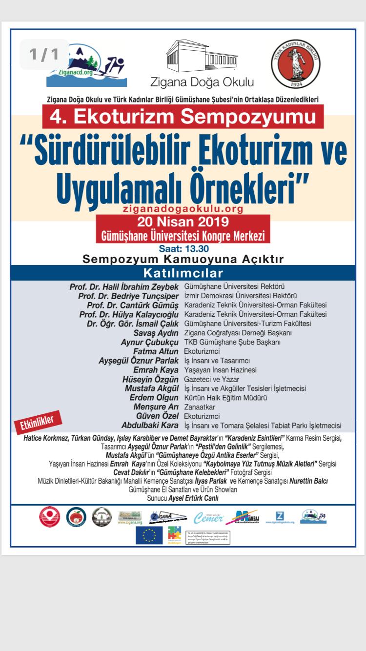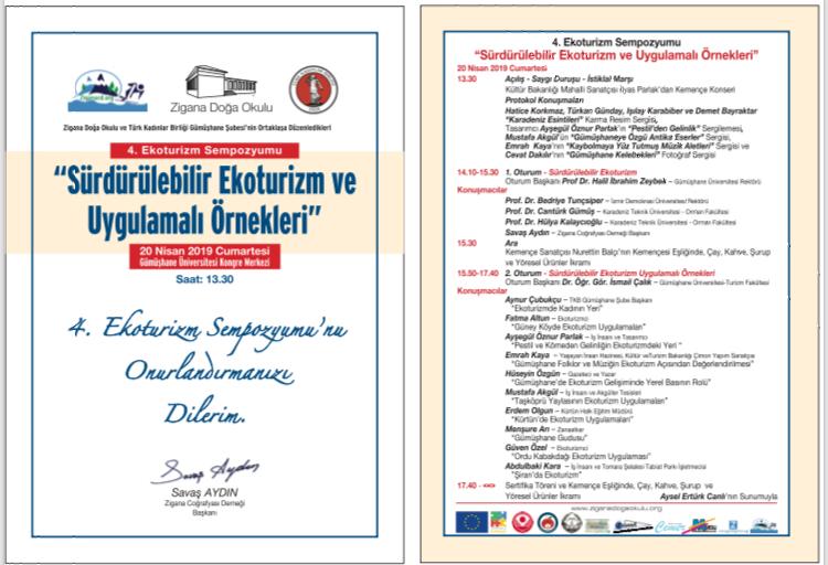 Zigana Coğrafyası Derneği faaliyetleri arasında yer alan ve bugüne kadar 3 kez gerçekleştirilen "Ekoturizm Sempozyumu"nun dördüncüsüne Gümüşhane Üniversitesi, Karadeniz Teknik Üniversitesi, İzmir Demokrasi Üniversitesi,