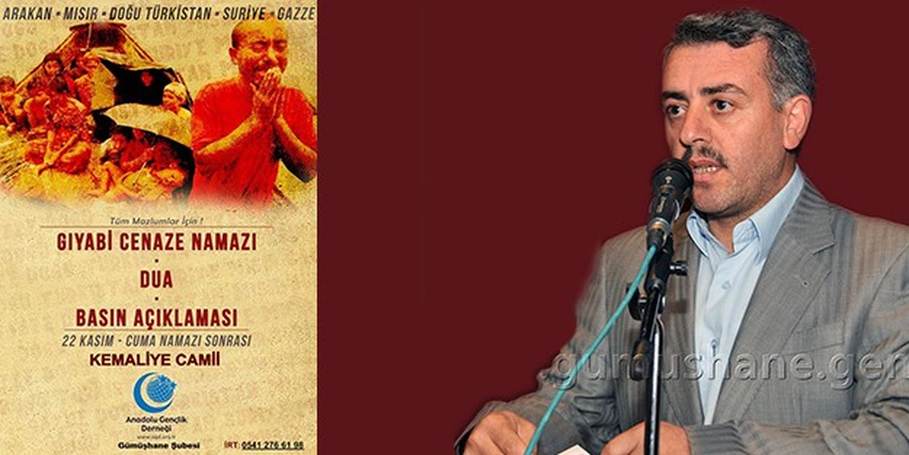 Program hakkında bilgi veren Anadolu Gençlik Derneği Gümüşhane Şube Başkanı Naci Şenel, ülke genelinde ki programa Gümüşhane olarak da katılacaklarını belirterek, “22 Kasım günü Cuma namazı sonrası Kemaliye Camii önünde Arakan, Mısır, Doğu Türkistan, Suriye Gazze ve tüm mazlumlar için gerçekleştireceğimiz gıyabi cenaze namazı, basın açıklaması ve dua programına Gümüşhane’deki kardeşlerimizin hassasiyet gösterip, katılımlarını bekliyoruz. Unutmamalı ki mazlumlar ayağa kalkmadıkça zalimler diz çökmez.” dedi.