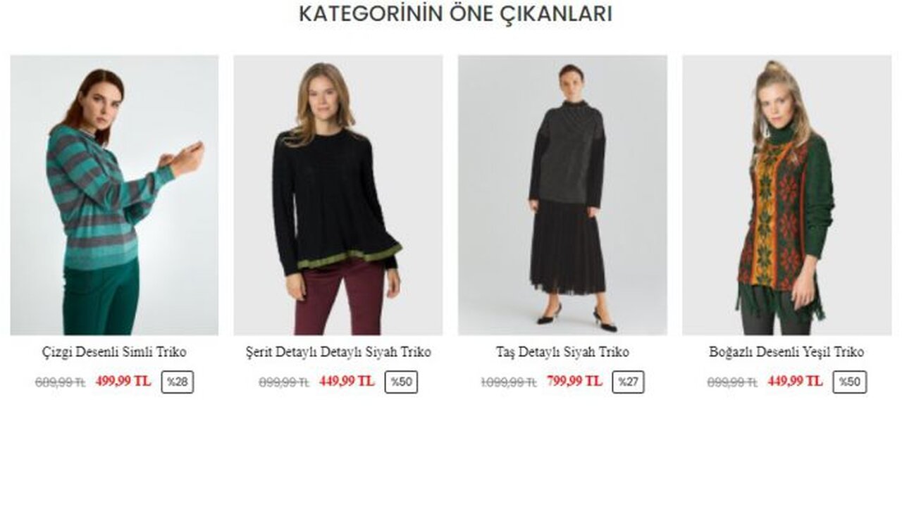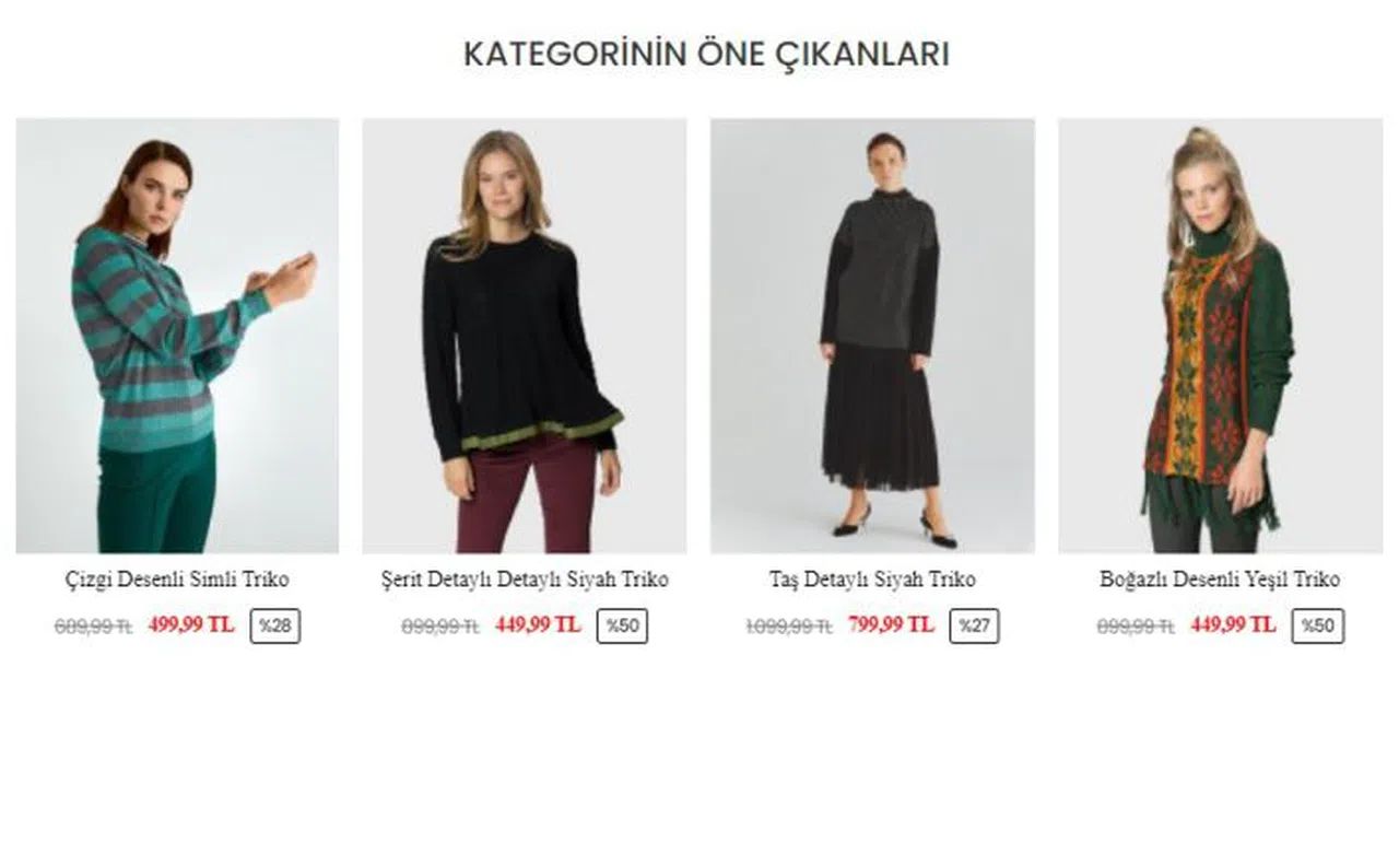 Kadınlar için Noel kazağı son zamanlarda en çok tercih edilen kazak modelidir. Diğer yandan, Beden çeşitliliği açısından da oversize bayan kazak modelleri bulunmaktadır. Üründe kullanılan malzemeler için bayan yün kazak ve penye kazak gibi kazaklar sitede mevcuttur. Farklı mevsim koşullarına uygunluk açısından ince ya da kalın kadın eşofman modelleri de mevcuttur. Tasarım çok yönlülüğü için sitede düz veya çizgili kadın sweatshirt tasarımları mevcuttur. Kazaklar çeşitli desenlerde gelir.
