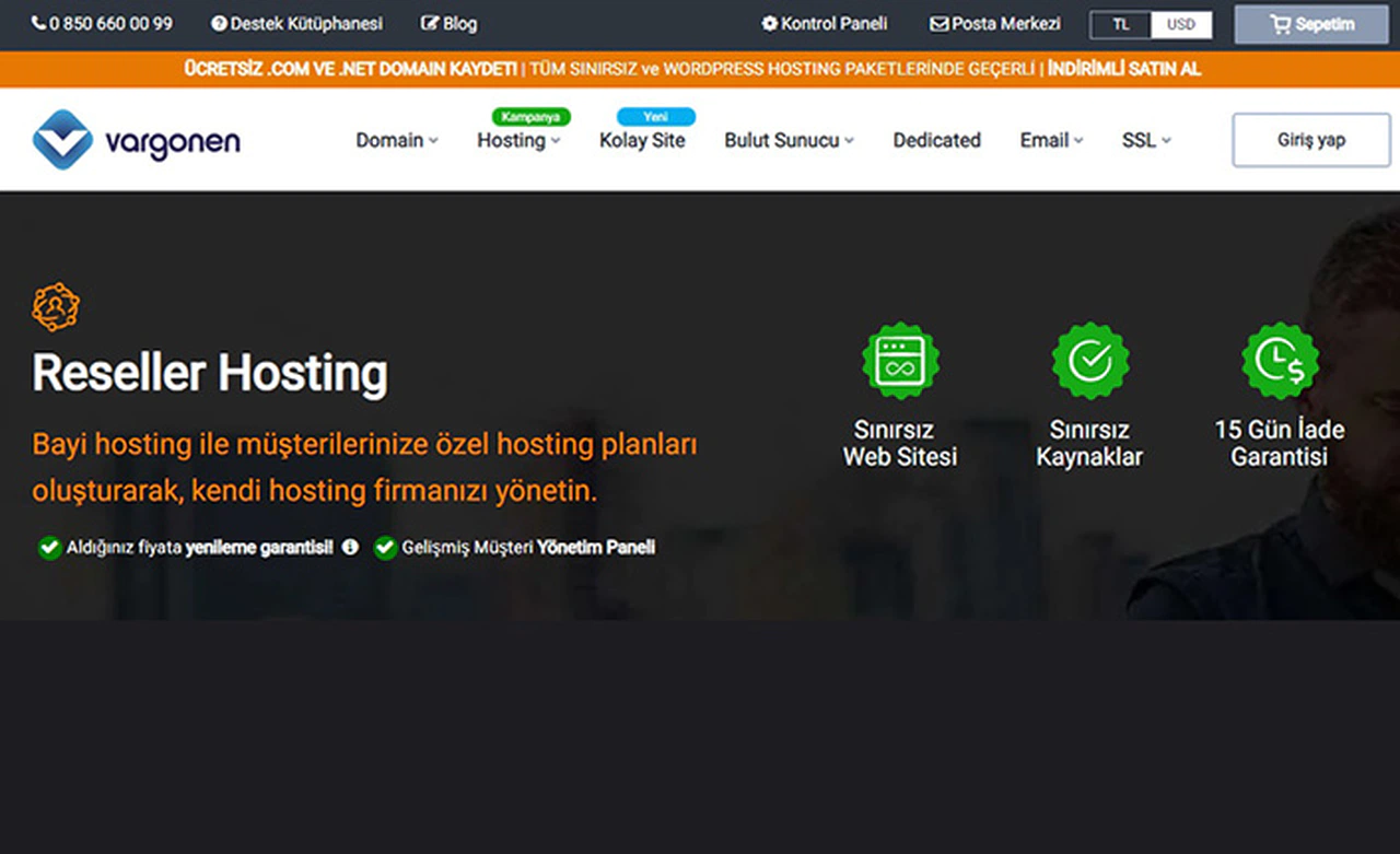 Ayrıca, olası kapasite arttırma taleplerinizde ve sunucu değişikliği gibi durumlar söz konusu olduğunda, veri kaybı yaşamamanız için ücretsiz destek veren bir hosting firması ile çalışmak oldukça önemlidir. Çözüm odaklı profesyonel teknik destek ekibine sahip ve 20 yılı aşkın tecrübesiyle Vargonen’i, Reseller Hosting ihtiyacınızda da güvenle tercih edebilirsiniz.