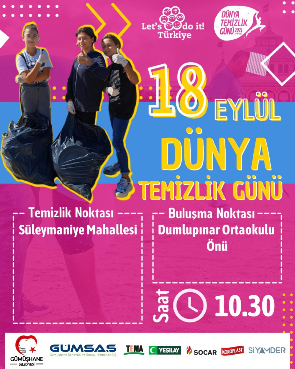 18 Eylül’de Türkiye’de geniş çaplı gerçekleşecek olan Dünya Temizlik Günü Let’s Do It! Türkiye ulusal ekibi tarafından organize ediliyor. Temizlik hareketi 7 bölge direktörü ve il temsilcileri koordinasyonuyla gerçekleşecek. Belediyelerin, STK’ların, çevre örgütlerinin ve binlerce gönüllünün katılacağı temizlik, eş zamanlı olarak, daha önce tespit edilmiş kirli alanlarda yapılacak.