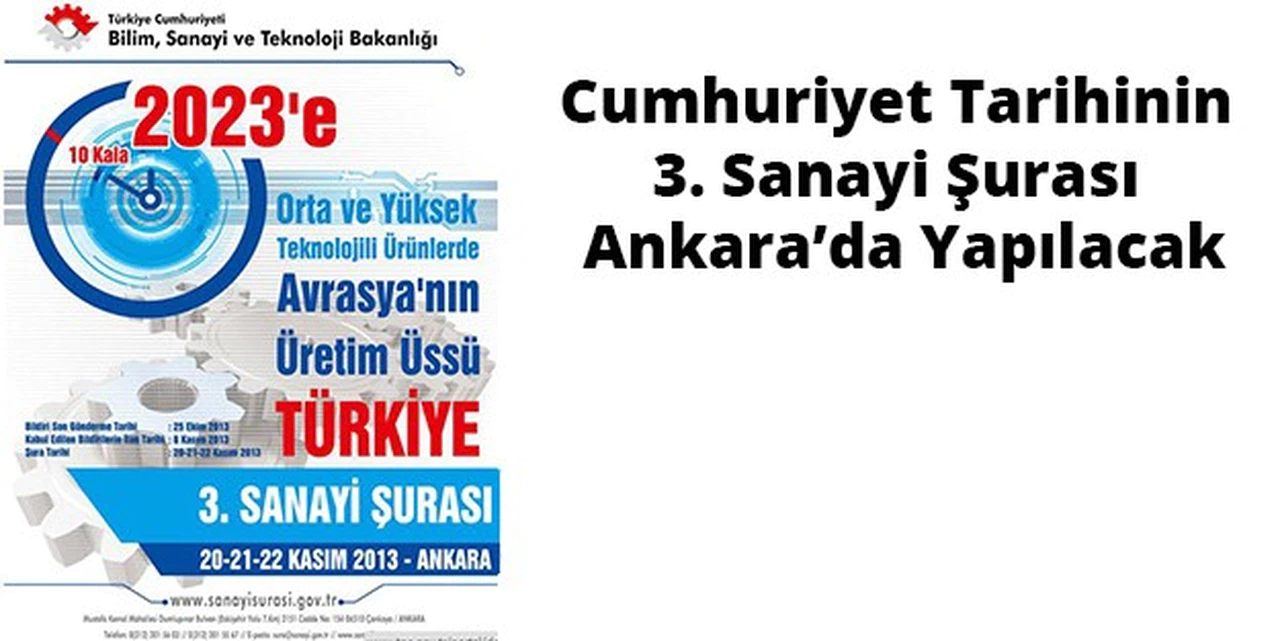 Hedeflerinin ülke sanayisinin rekabet gücünü ve verimliliğini artırarak, dünya ihracatından daha fazla pay alan, ağırlıklı olarak yüksek katma değerli ve ileri teknolojiye dayalı ürünlerin üretildiği, nitelikli işgücüne sahip, topluma ve çevreye duyarlı bir sanayi yapısına dönüşümü hızlandırmak olduğunu ifade eden Topaç, “Bu çerçevede, Sanayi alanında durum tespiti, inceleme ve değerlendirmeler yapmak, uygulamadan kaynaklanan sorunları belirlemek ve bunlara ilişkin geleceğe yönelik çözüm önerilerinin görüşüleceği “2023’e 10 Kala Orta ve Yüksek Teknolojili Ürünlerde Avrasya’nın Üretim Üssü Türkiye” teması ile kamu, üniversiteler, sektör temsilcileri ve sivil toplum kuruluşlarının katılımı ile; 1. Bilimsel ve Teknolojik Gelişim – Ar-Ge ve İnovasyon, 2. Kamu Destekleri, Etkileri, İzlenmesi ve Değerlendirilmesi, 3. Sanayide Sürdürülebilir Üretim, 4. Sanayide İnsan Kaynakları ve İstihdam, 5. Sanayi Bölgeleri ve Kümelenme, 6. Sanayi Politikaları ve Uluslararası Rekabet, başlıkları altında, Cumhuriyet tarihimizin 3. Sanayi Şurası 20-21-22 Kasım 2013 tarihinde Ankara’da gerçekleştirilecektir.” dedi.