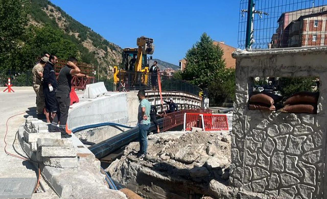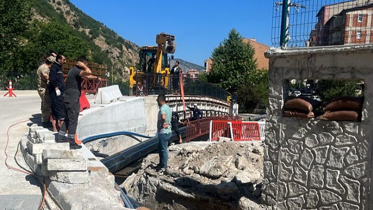 Gümüşhane Belediyesi Su ve Kanalizasyon İşleri Müdürlüğü ekipleri tarafından bir süredir hattın giriş ve çıkışında yapılan çalışmalar tamamlanırken, yıkılacak köprüdeki 500’lük hattın yapılan yeni köprüye aktarılma çalışmaları bugün başladı.