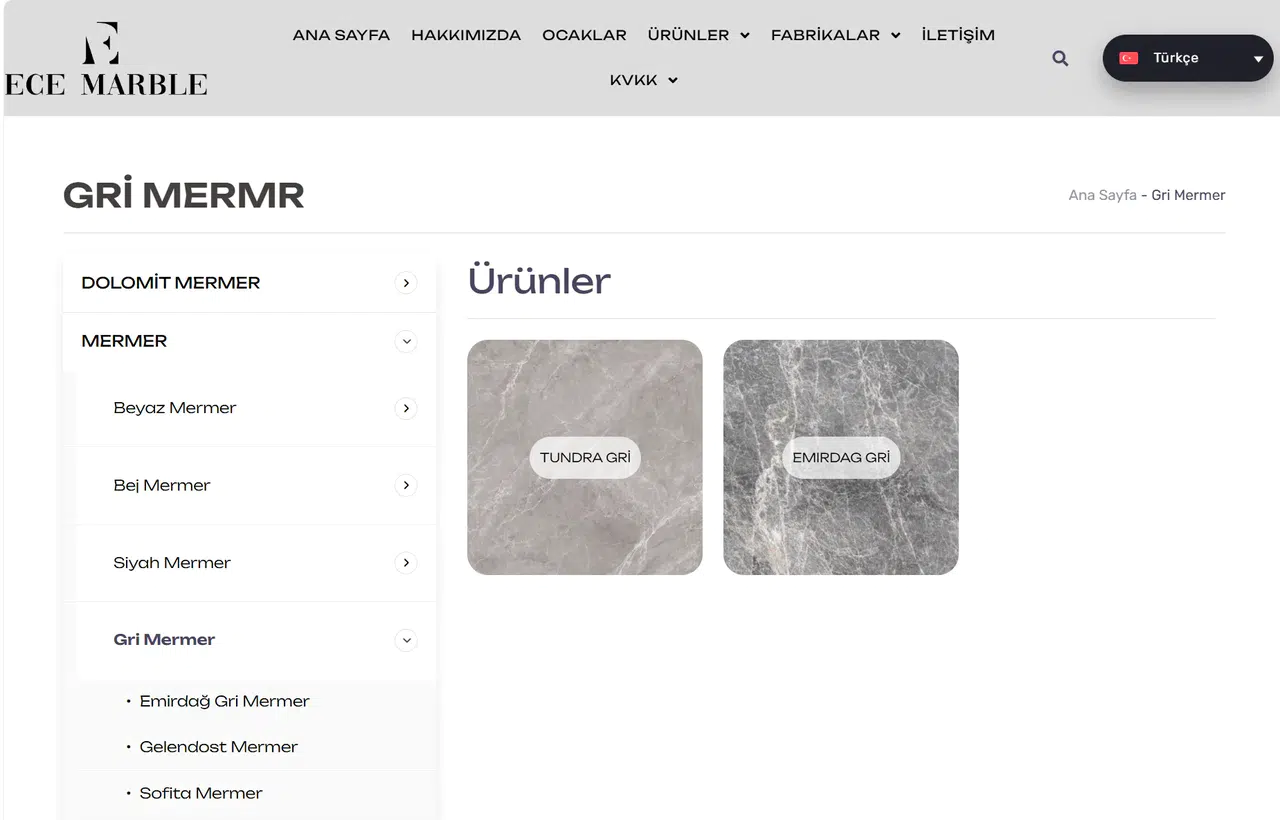 2001 yılında Denizli’nin bereketli topraklarında kurulan Ece Marble, Türkiye’nin maden zenginliğini dünyaya taşıma vizyonuyla yola çıktı. Bugün, Anadolu’nun dört bir yanından özenle seçilen en nadide mermer ve doğal taşları, Denizli ve Aksaray’daki son teknoloji fabrikalarında şekillendirerek, mimari ve tasarım dünyasına sunuyor. Blok, plaka ve hassas ebatlı ürün yelpazesiyle hem yerel hem de küresel ölçekteki projelerin temel taşı olmayı sürdürüyor.