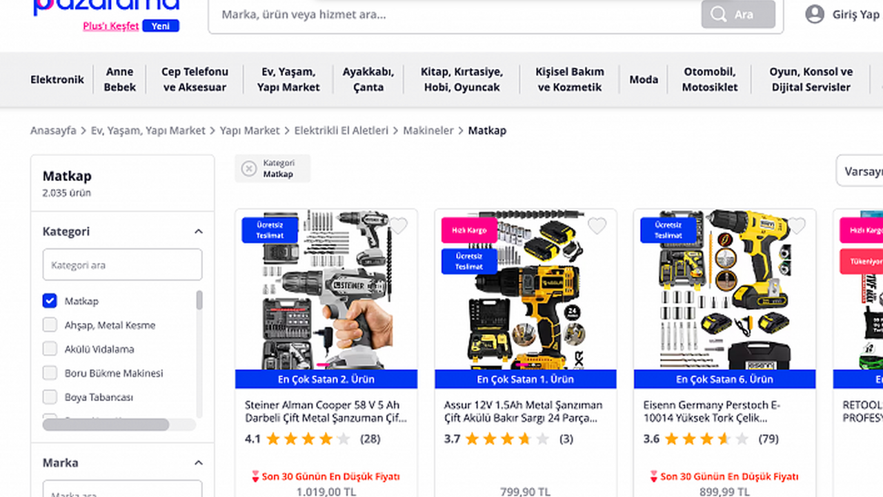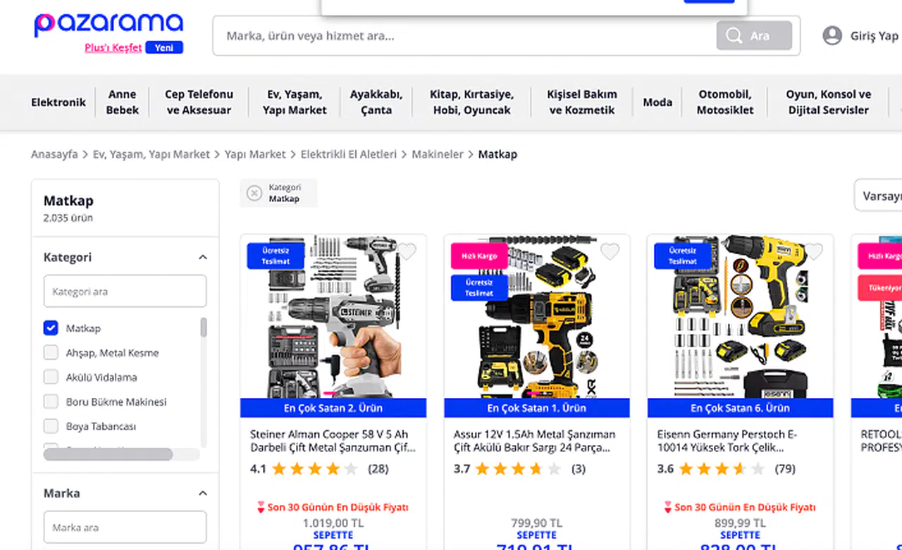 Pazarama üzerinde yer alan geniş matkap seti seçenekleri, farklı bütçelere ve kullanım alanlarına hitap eder. Kaliteli malzemelerden üretilmiş setler, uzun ömürlü performans sunarak baştan sona bir dizi projede güvenilir bir çalışma arkadaşı olmayı amaçlar. Matkap setinizi seçerken dikkat etmeniz gereken unsurlar arasında uç çeşitliliği, malzeme kalitesi ve setin içindeki ek aksesuarlar bulunmaktadır. İhtiyaçlarınıza uygun bir set bulmak, projelerinizi daha hızlı ve verimli bir şekilde tamamlamanıza yardımcı olacaktır.