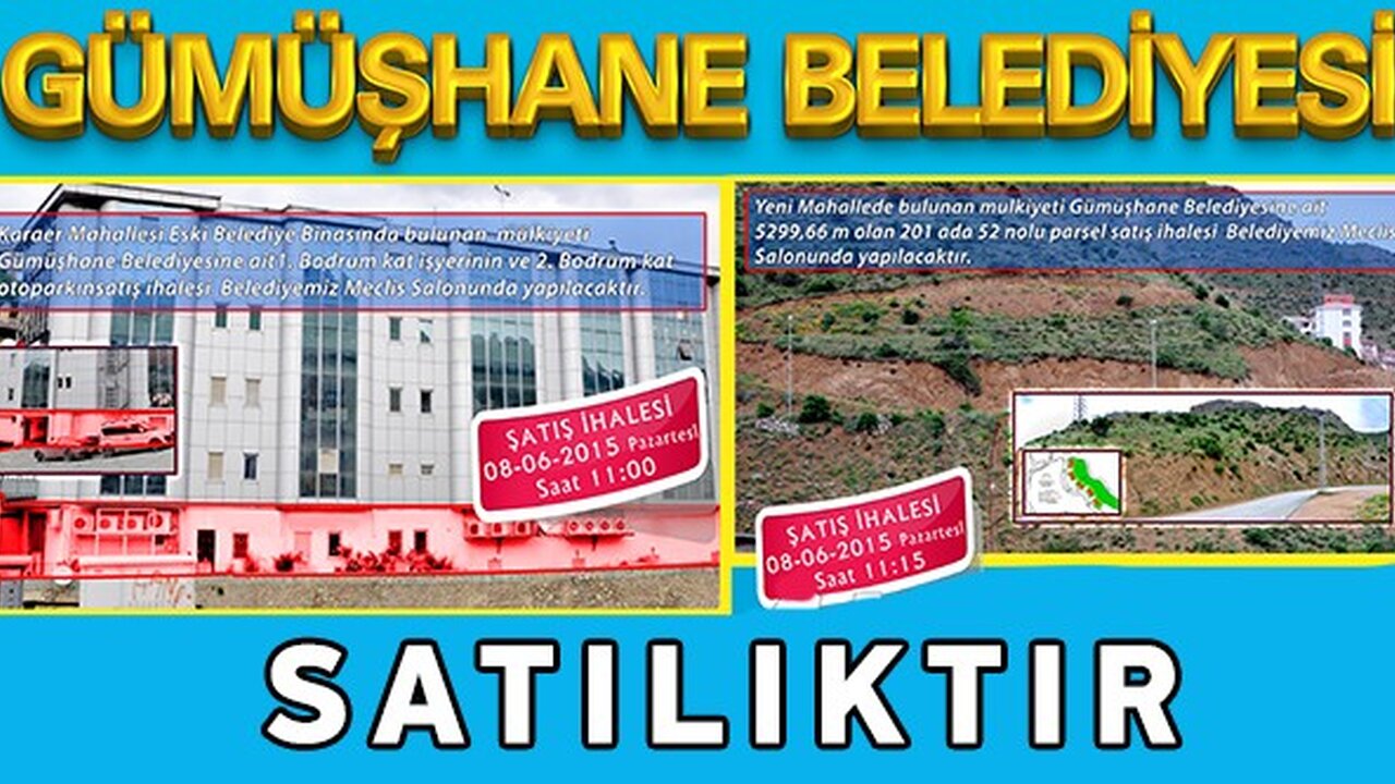 Gümüşhane Haberleri Duyuru Gümüşhane Belediyesinden Satılık