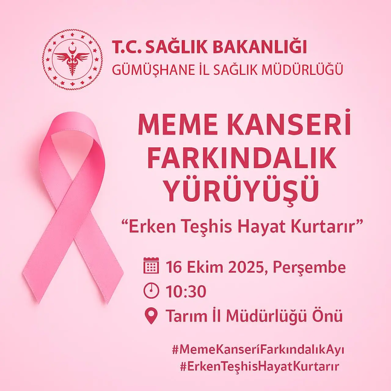 Yürüyüş, Tarım Orman İl Müdürlüğü önünden başlayarak Belediye Binası önünde sona erecek. Katılımcılar, “Erken Teşhis Hayat Kurtarır” sloganı eşliğinde yürüyerek meme kanserine karşı farkındalık mesajı verecek.