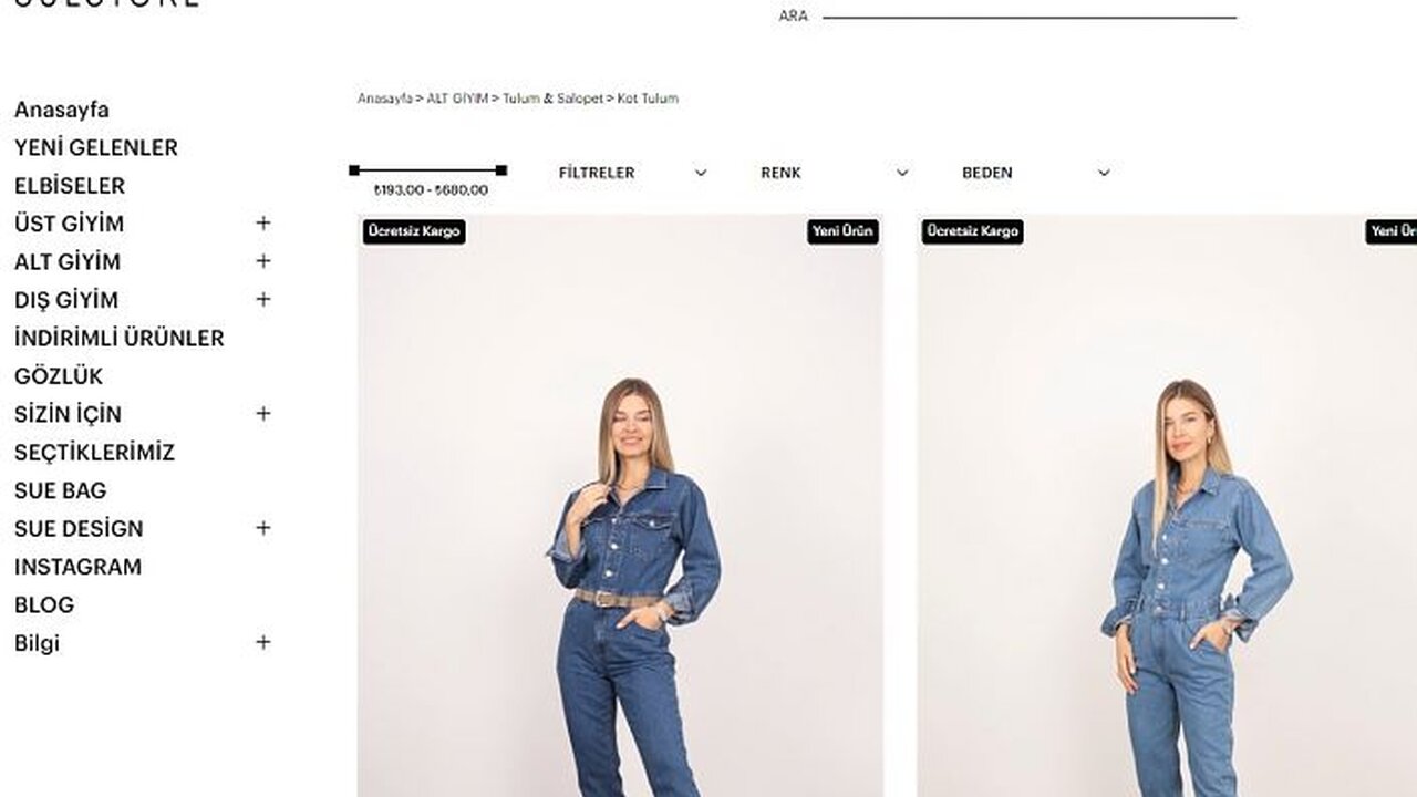Her Vücuda Uygun Kot Tulum