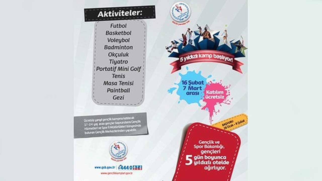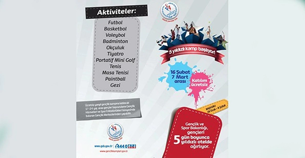 Gençlik ve Spor Bakanlığı, Gençlik Hizmetleri Genel Müdürlüğü 16 Şubat-7 Mart tarihlerinde Antalya’da kış dönemi gençlik kampı düzenliyor.