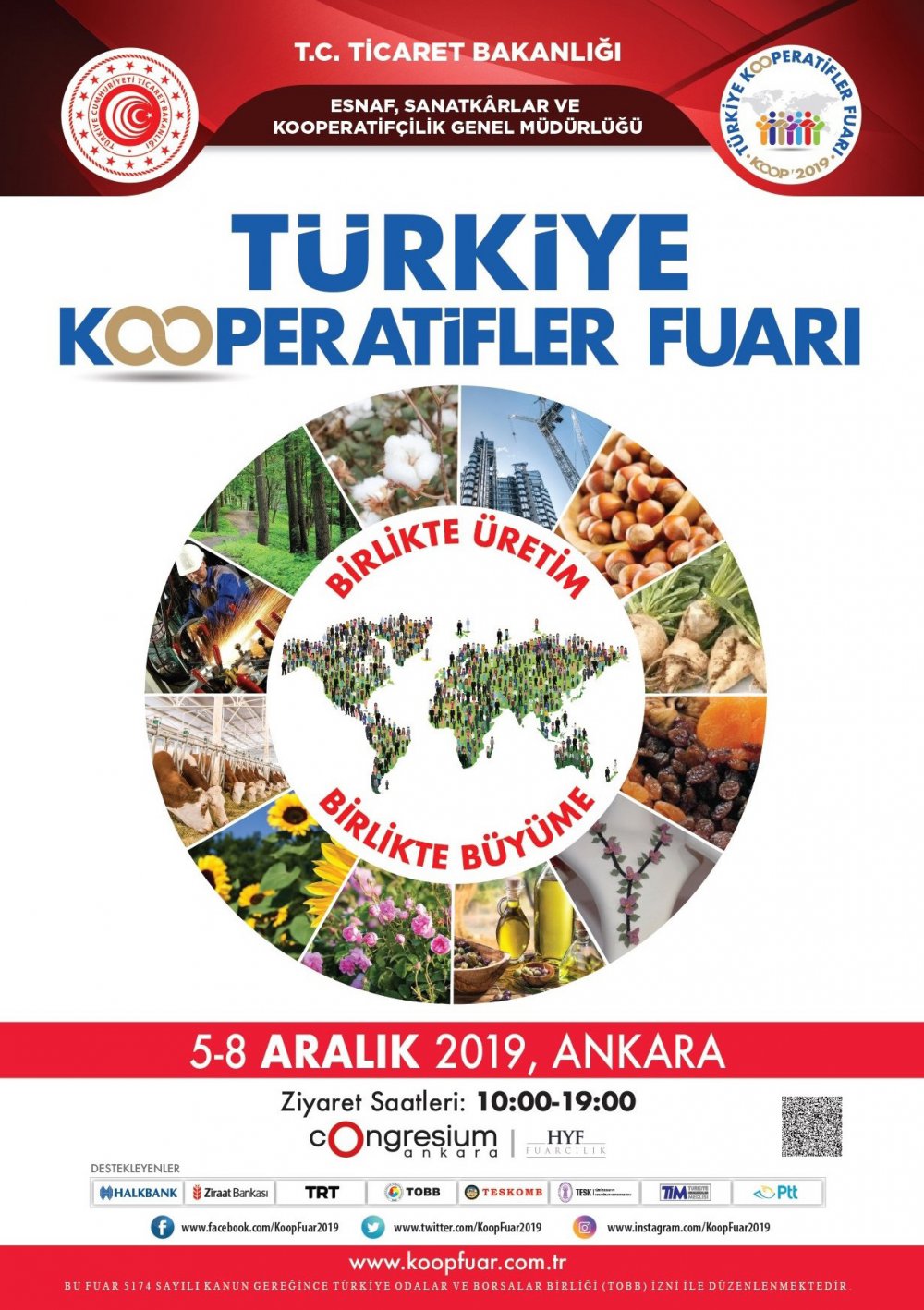 Gümüşhane Ticaret İl müdürü Mürsel Yaşar, Ticaret Bakanlığı tarafından bu yıl üçüncüsü düzenlenecek olan Türkiye Kooperatifler Fuarının ‘Küresel Ekonomiye Kooperatif Etkisi’ teması ile 5-8 Aralık tarihlerinde Ankara ATO Congresium Kongre ve Sergi Merkezinde gerçekleştirileceğini söyledi.