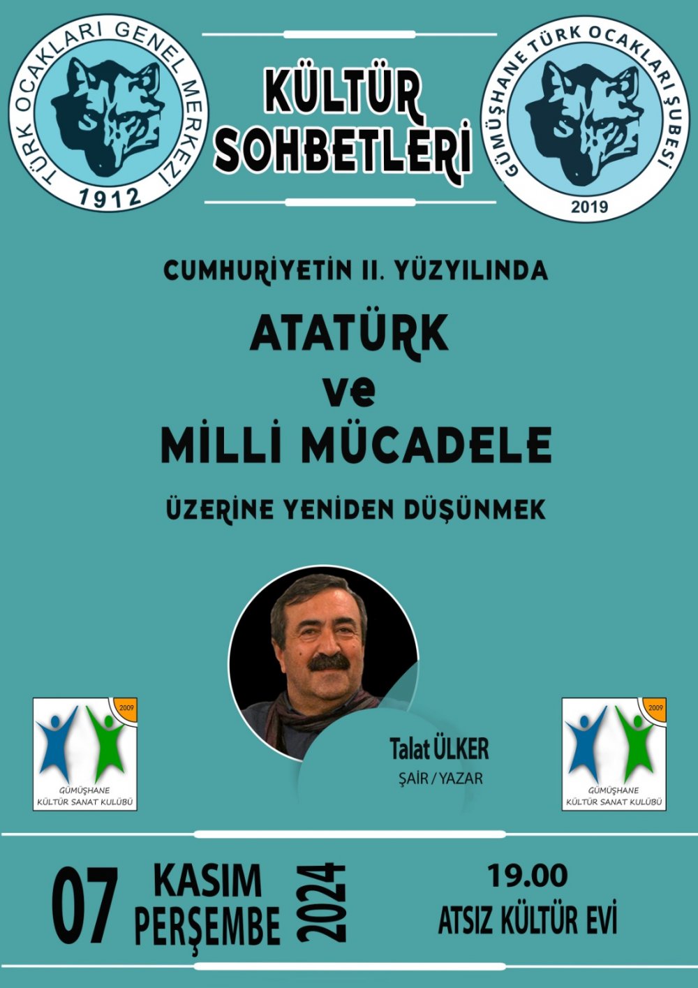 Bu hafta yapılacak ilk programda Gümüşhaneli şair ve yazar Talat Ülker konuşmacı olarak katılacak. Ülker, "Cumhuriyetin 2.yüzyılında Atatürk ve Milli Mücadele üzerine yeniden düşünmek" konulu sohbetini gerçekleştirecek.