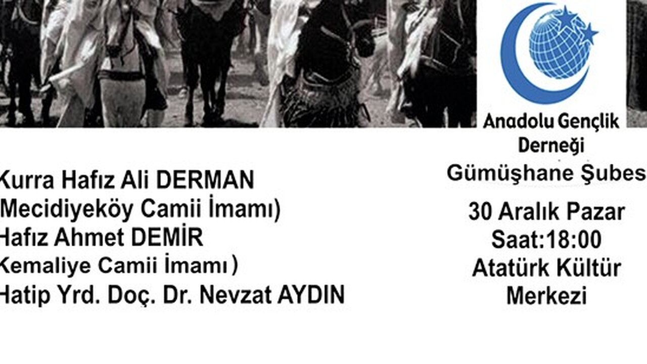 Anadolu Gençlik Derneği (AGD) Gümüşhane Şubesi, Mekke'nin Fethinin 1382.yılı ve Kur'an Ziyafeti programı düzenleyecek.