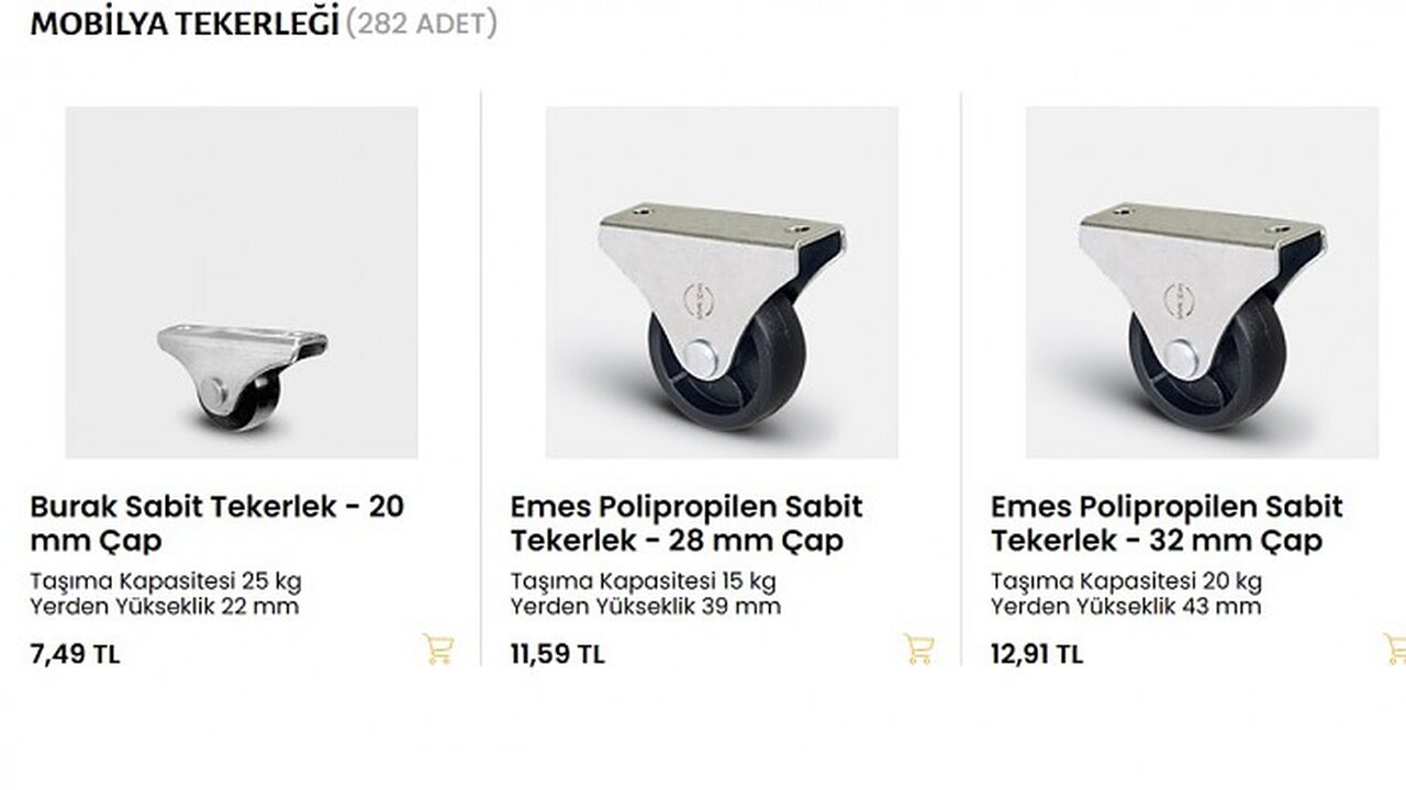 Mobilya tekerleği çeşitli eşyalara monte edilebilir. Örneğin sandalyeler, koltuk, masa, dolap, sehpa gibi farklı mobilyalara monte edilmektedir. Bu şekilde oldukça portatif olmalarını sağlayarak hareketini kolaylaştıran bir parça olmaktadır. Mobilya tekerleği aynı zamanda birçok farklı materyalden üretilmektedir. Bunlar, ahşap tekerlek, metal tekerlek, plastik tekerlek, cam tekerlek gibi farklı malzemeler olarak karşımıza çıkmaktadır. Mobilya tekerleği birçok farklı şekilde tasarlanabilir.