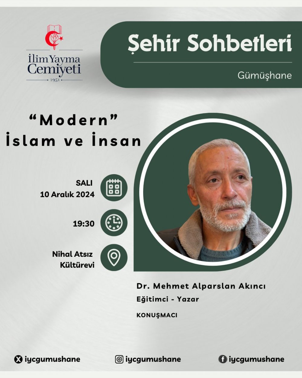 Gümüşhane İlim Yayma Cemiyeti Başkanı Adem Varan, programa ilişkin yaptığı açıklamada şu ifadeleri kullandı: "Günümüz dünyasında İslam ve insan ilişkisini derinlemesine konuşacağımız bu programa tüm halkımız davetlidir. Sizleri de aramızda görmekten mutluluk duyarız."
