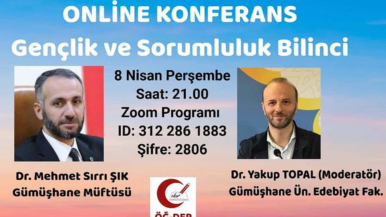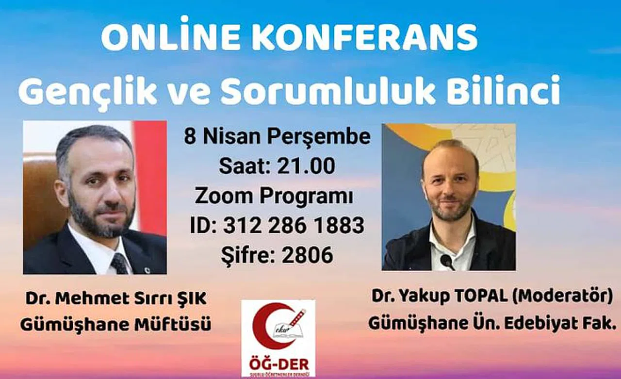 Şuurlu Öğretmenler Derneği (ÖĞ-DER) Gümüşhane Şubesi zoom programı üzerinden Gümüşhane Müftüsü Dr. Mehmet Sırrı Şık ile gençlik üzerine bir konferans düzenleyecek.