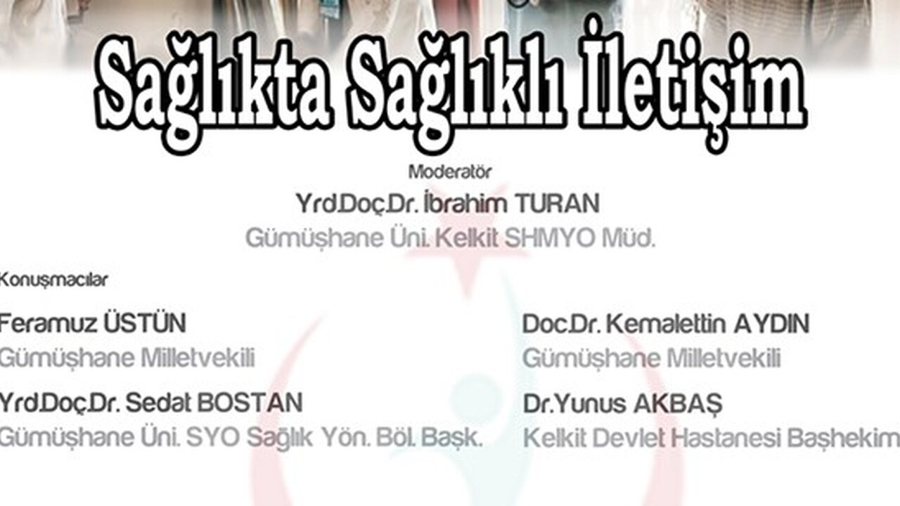 Gümüşhane Üniversitesi Kelkit Sağlık Hizmetleri Yüksekokulu, Gümüşhane Kamu Hastaneleri Birliği Genel Sekreterliği Kelkit Devlet Hastanesi işbirliği ile "Sağlıkta Sağlıklı İletişim" konulu panel düzenleyecek.