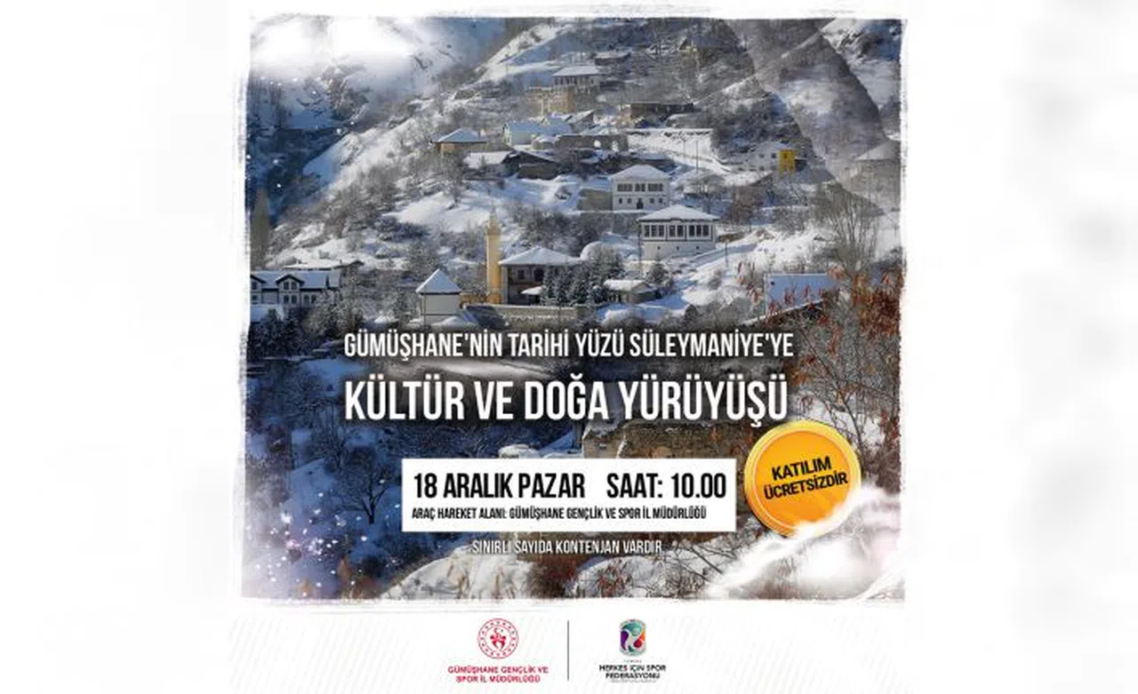 Gümüşhane Gençlik ve Spor İl Müdürlüğü sosyal medya hesaplarından yaptığı açıklamada tüm öğrencileri ve Gümüşhane halkını eski dönemde maden çıkarılan ocaklarının gözlemlenebildiği mahallede yapılacak yürüyüşe davet etti.